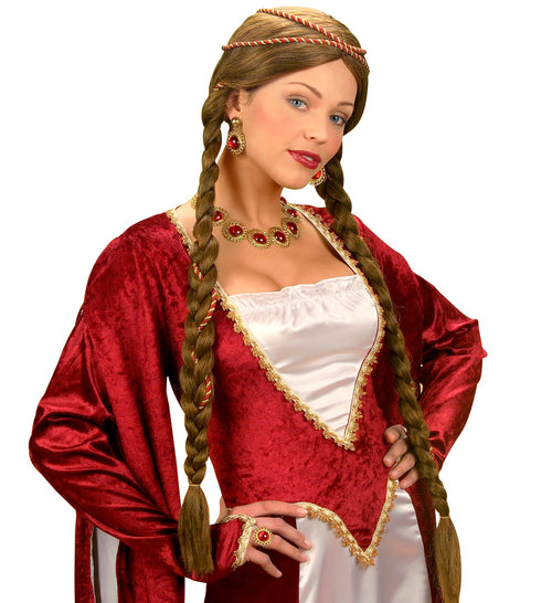 Stap in de tijdmachine en word een middeleeuwse koningin met deze prachtige bruine pruik met vlechten! Perfect voor elk kostuumfeest. Kenmerken Authentieke middeleeuwse stijl Bruine kleur met vlechten Comfortabel en makkelijk te dragen Transformeer je look Of je nu een...
