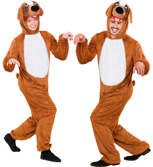 Pluche troetel hondenpak voor carnaval Dit bruine troetel honden kostuum voor dames en heren is een lekker warm feestkostuum uit de betere klasse. Dit hondenpakje is gemaakt van zachte pluche stof. Het honden kostuum voelt daardoor net aan als een...