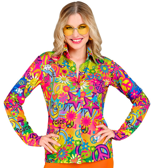 Stap terug in de tijd met dit kleurrijke Jaren 70 shirt voor dames en verspreid de boodschap van liefde en vrede! Kenmerken Verkrijgbaar in maten S/M, L/XL, XXL Iconische jaren 70 stijl Comfortabel en trendy Laat je innerlijke hippie stralen!...