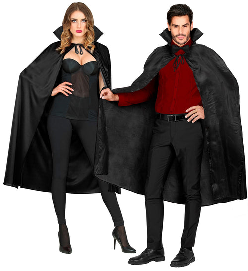 Tijd om je innerlijke Dracula los te laten met deze prachtige Dracula cape met kap! Deze satijnen cape van 140 cm in klassiek zwart is de perfecte keuze om je look voor Halloween of elk ander verkleedfeest helemaal af te...