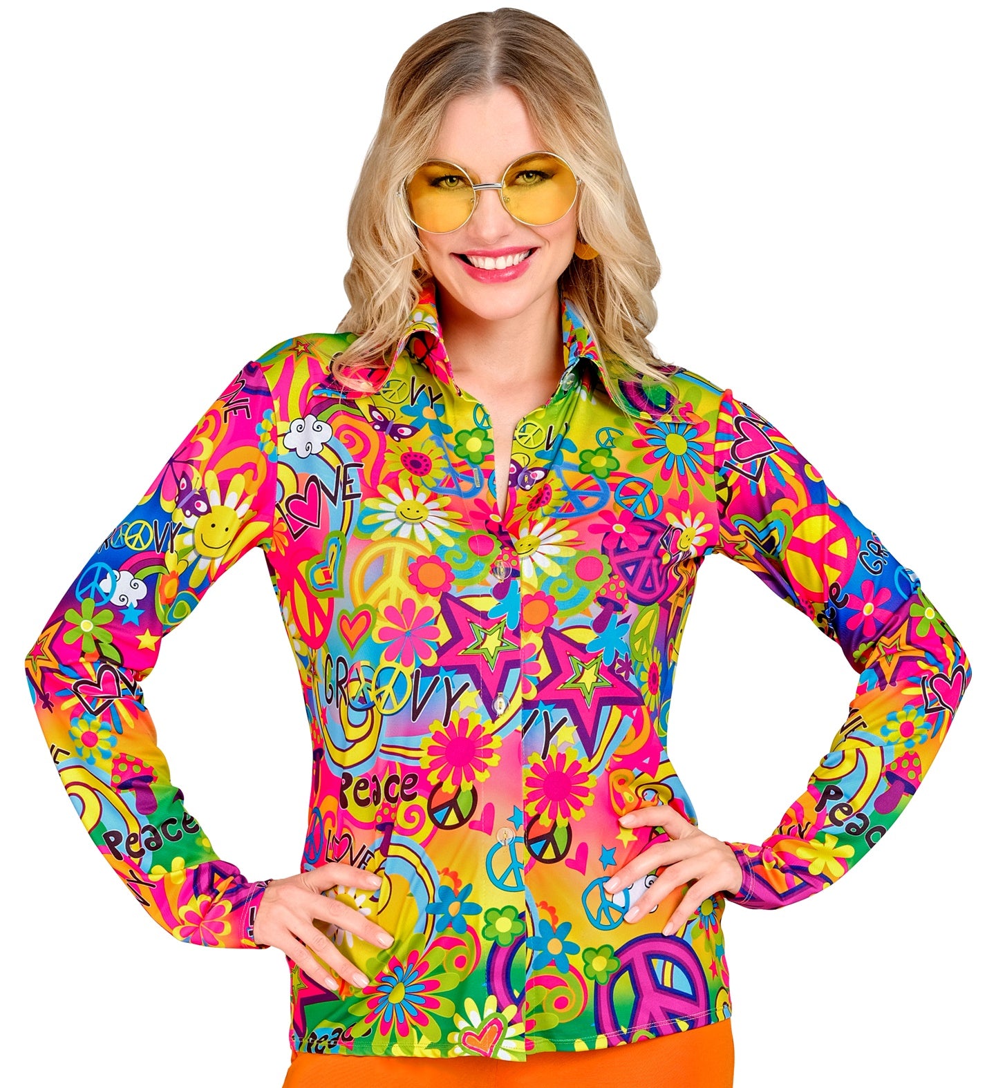 Stap terug in de tijd met dit kleurrijke Jaren 70 shirt voor dames en verspreid de boodschap van liefde en... Lees meer