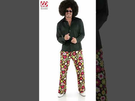 70's groovy heren shirt zwart