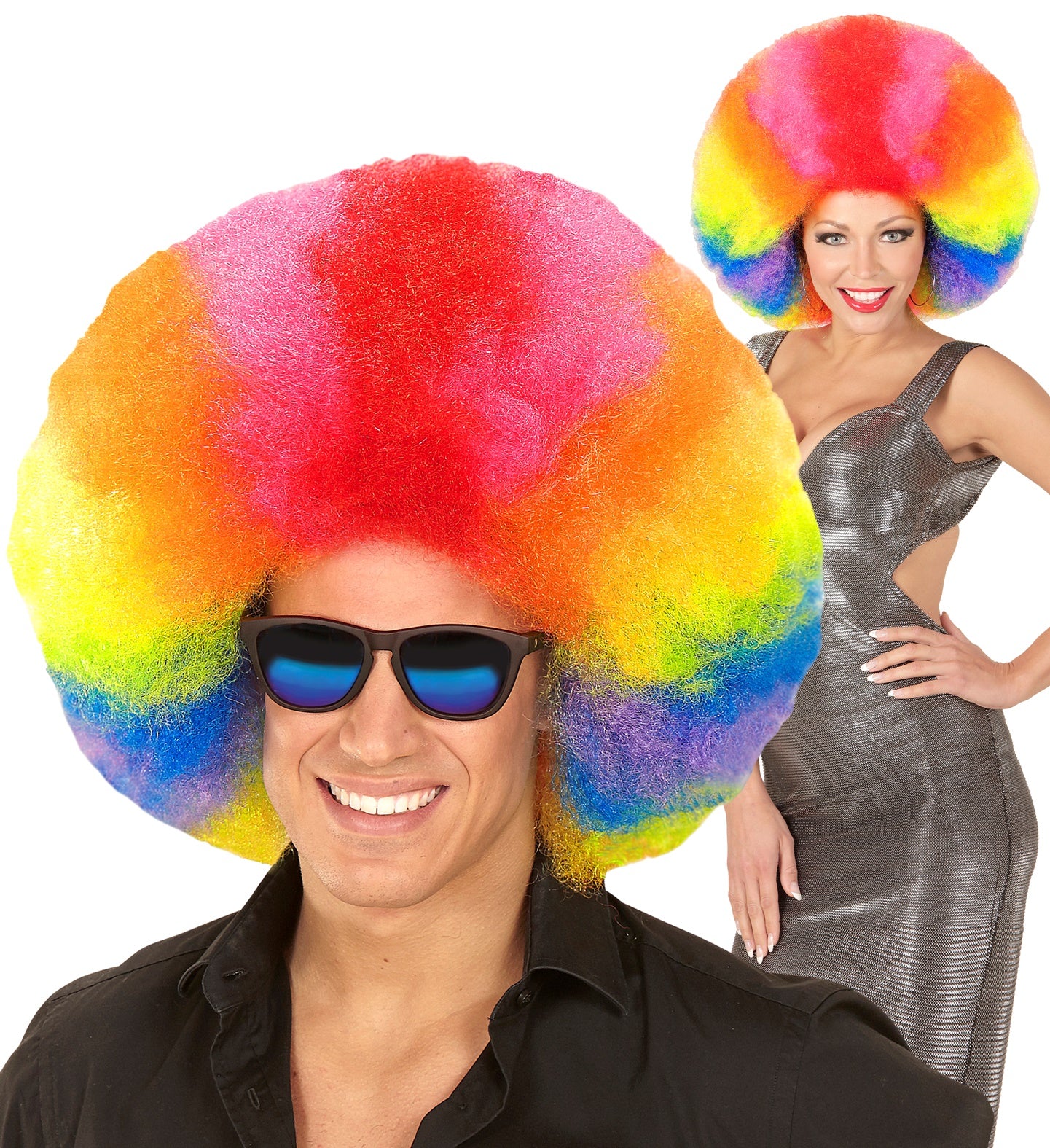 Afro pruik regenboogkleur
