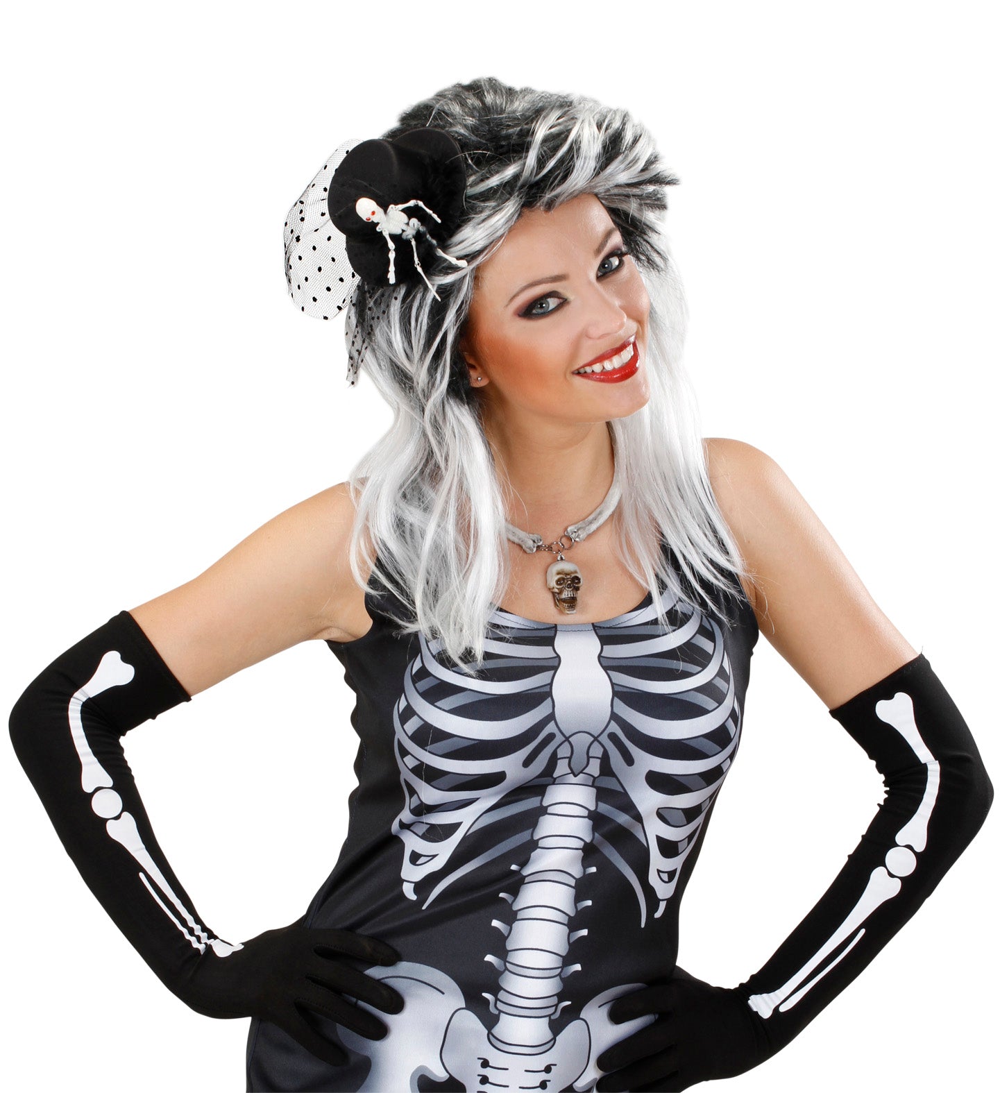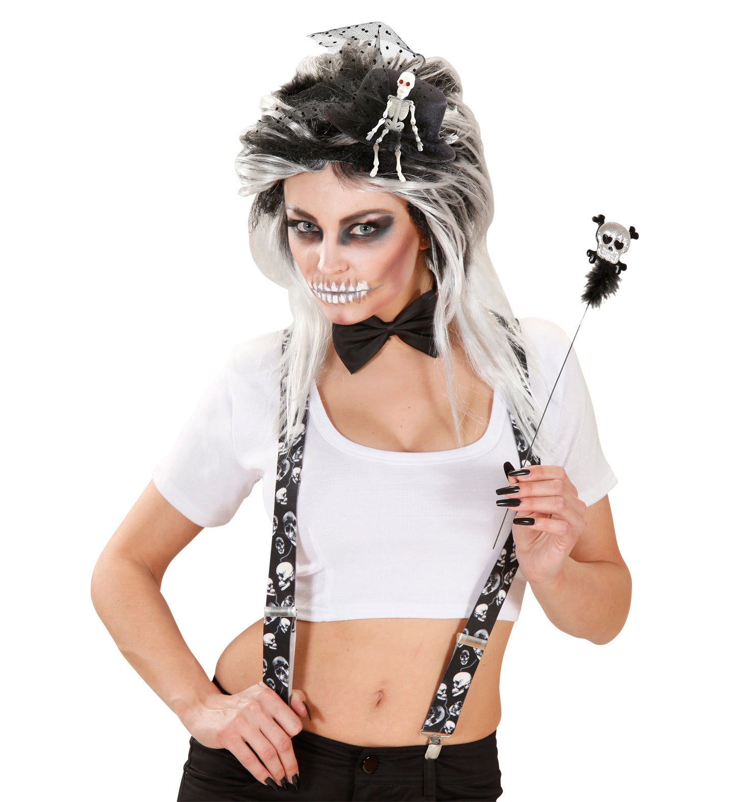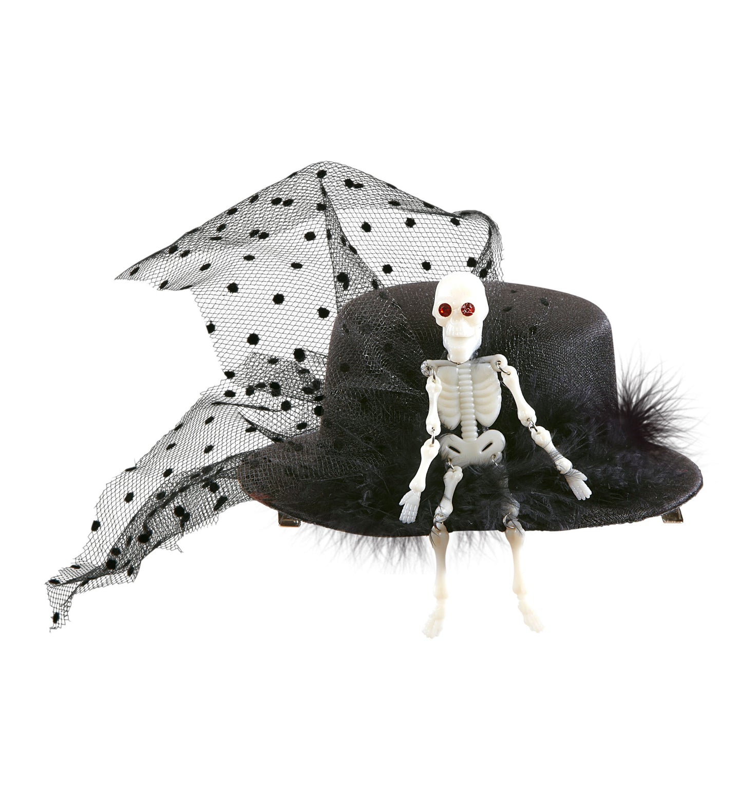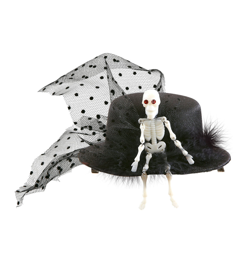 Mini hoge hoed met tule en skelet