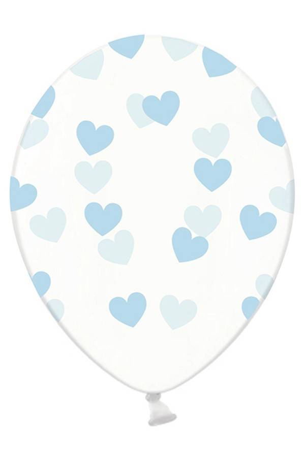 Doorzichtige ballonnen met blauwe hartjes