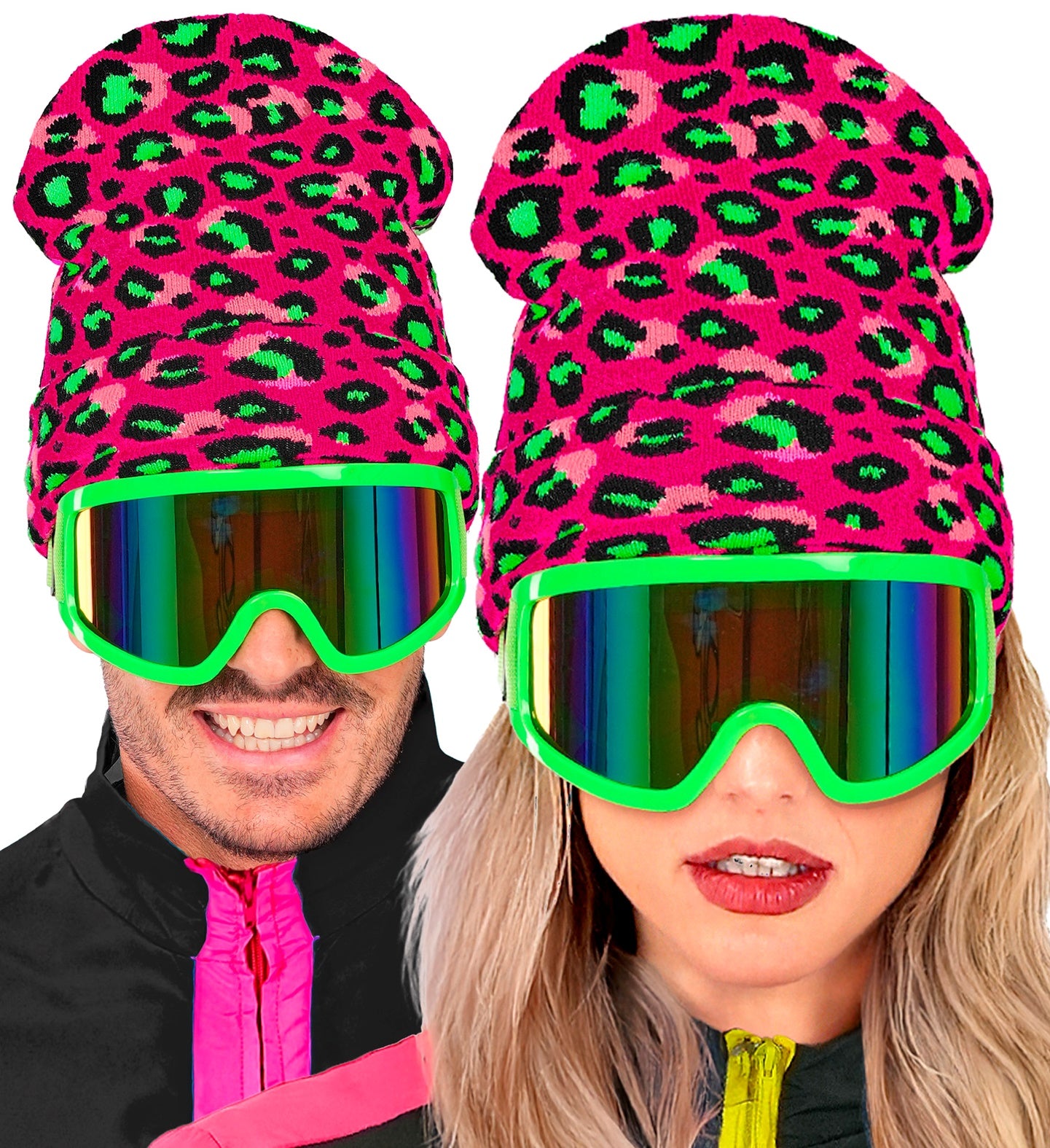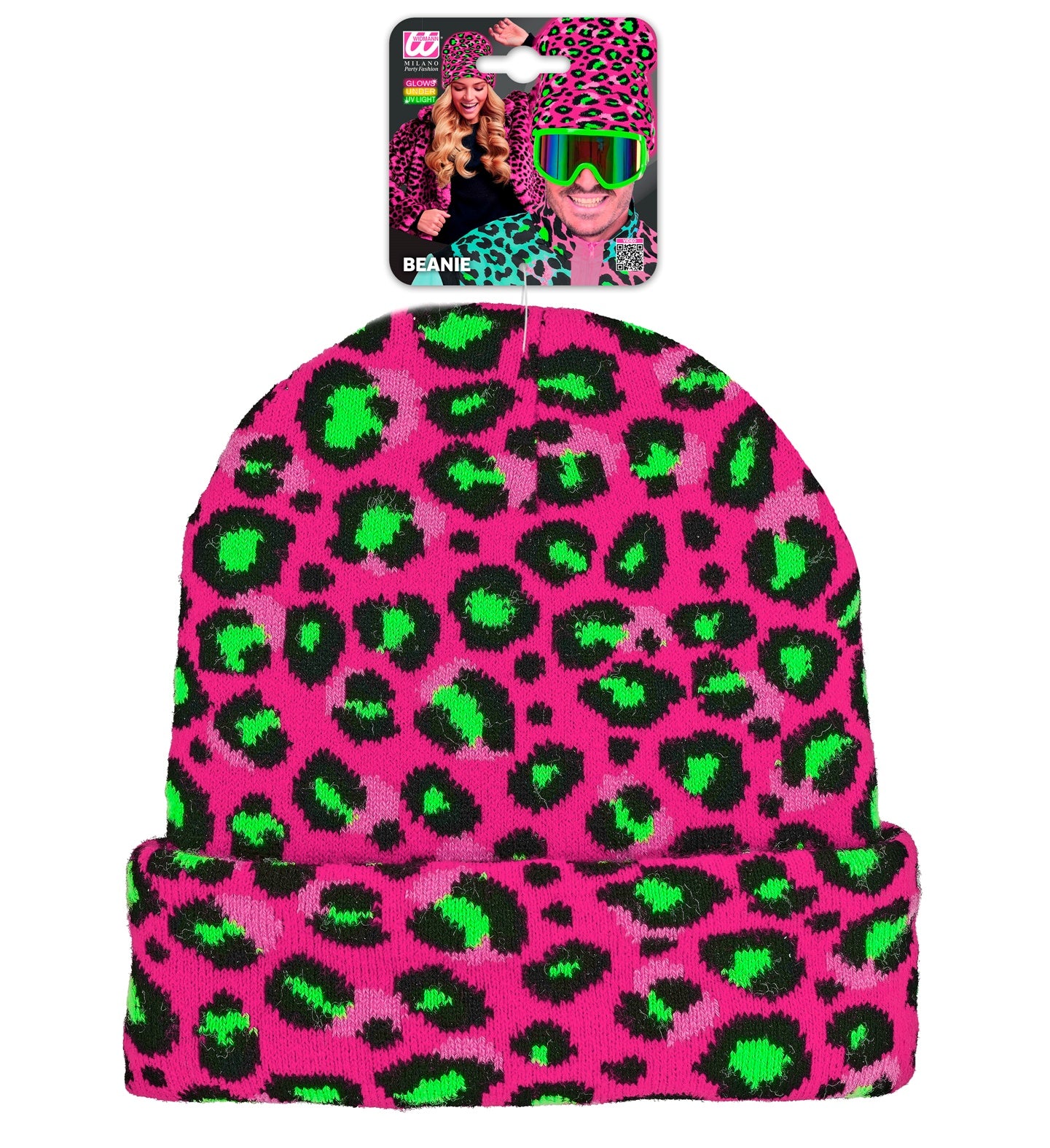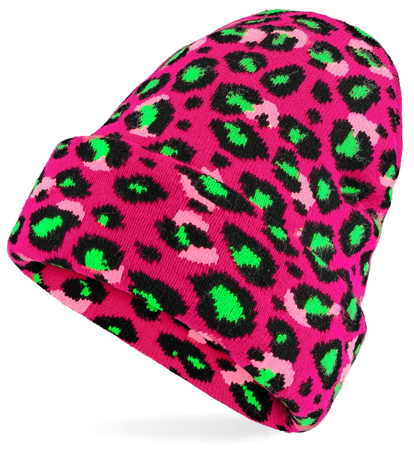 Beanie luipaard neon roze