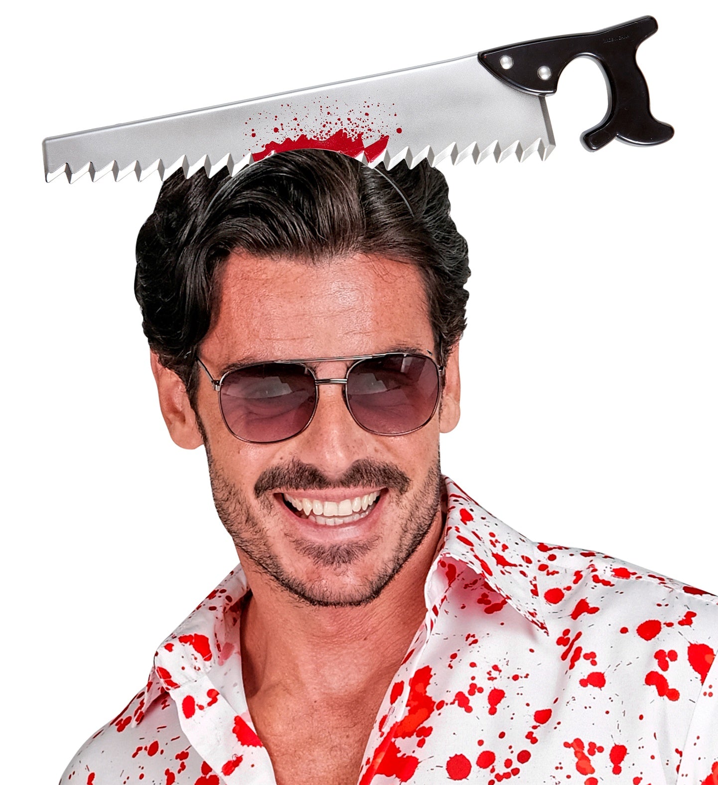 Maak je Halloween outfit compleet met deze bloederige zaag in je hoofd! Perfect voor een griezelige look die indruk maakt... Lees meer