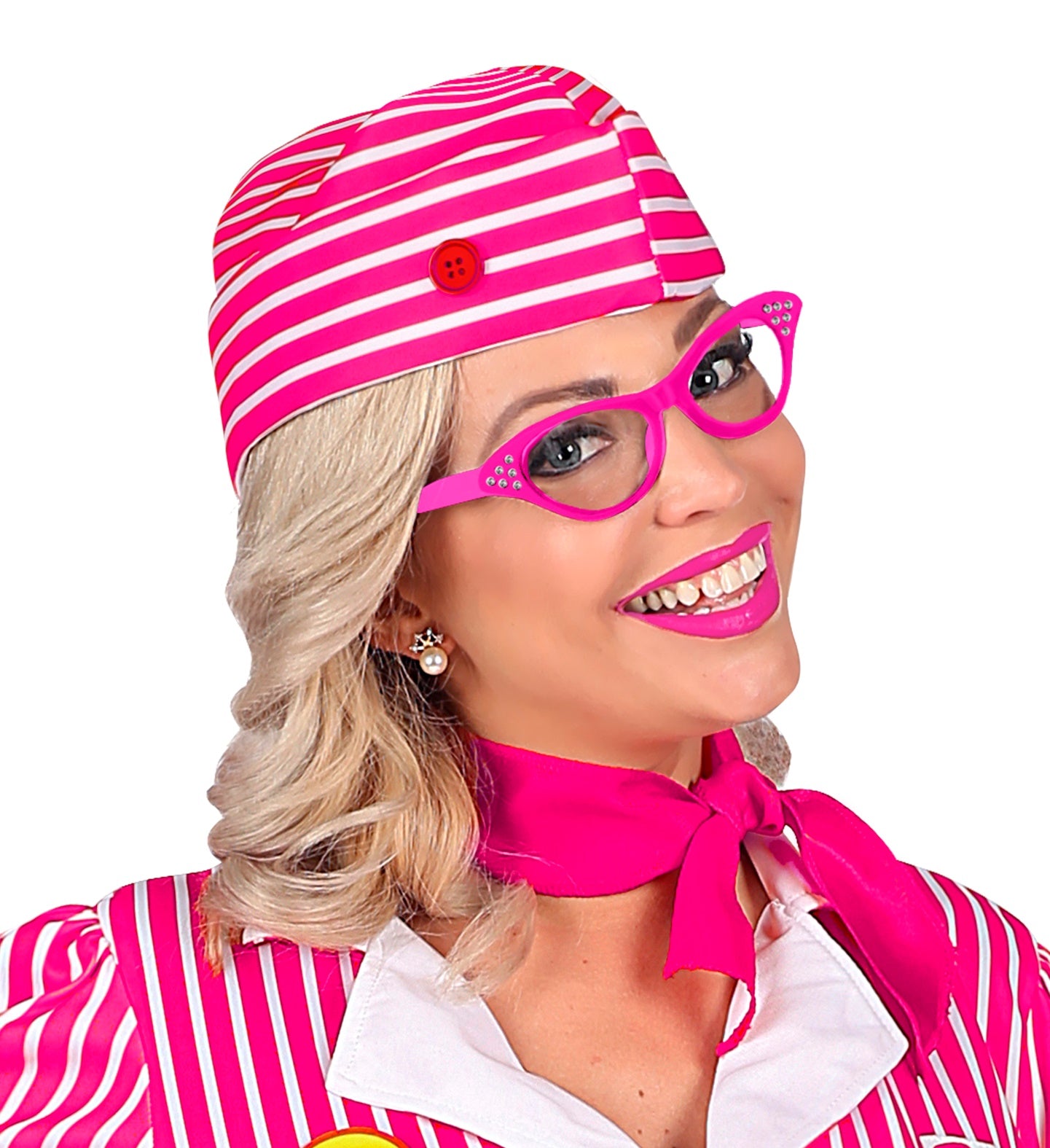 Ga terug naar de jaren '50 met deze sprankelende roze bril vol strass! Perfect voor een retrofeestje of carnaval. Steel... Lees meer