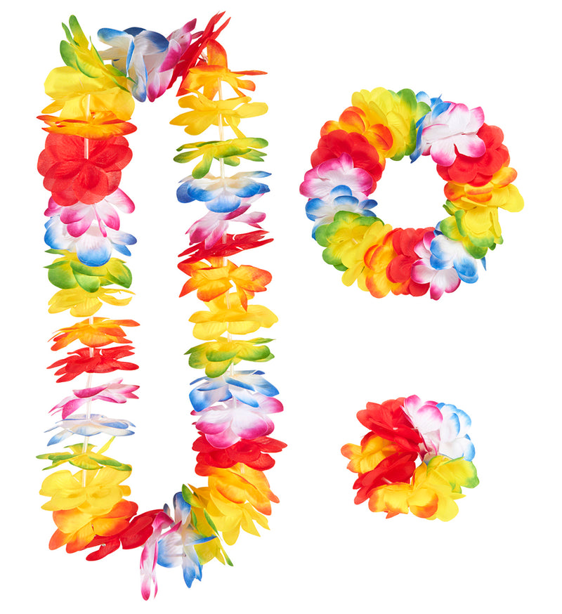 Fleurige Hawaiiaanse bloemenslinger setjes Deze fruitige bonte Hawaiiaanse bloemenslinger set is leuk als tropische feest accessoire voor Hawaiiaanse feestavonden in... Lees meer