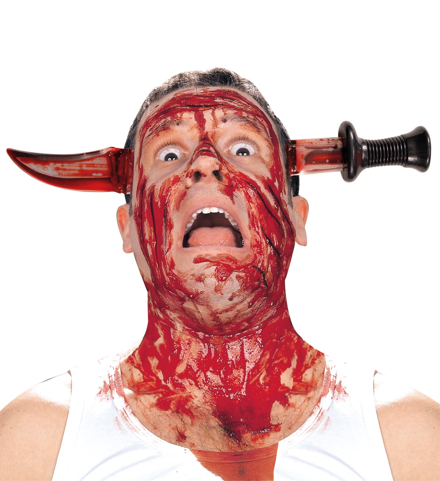 Mes door hoofd met bloed diadeem