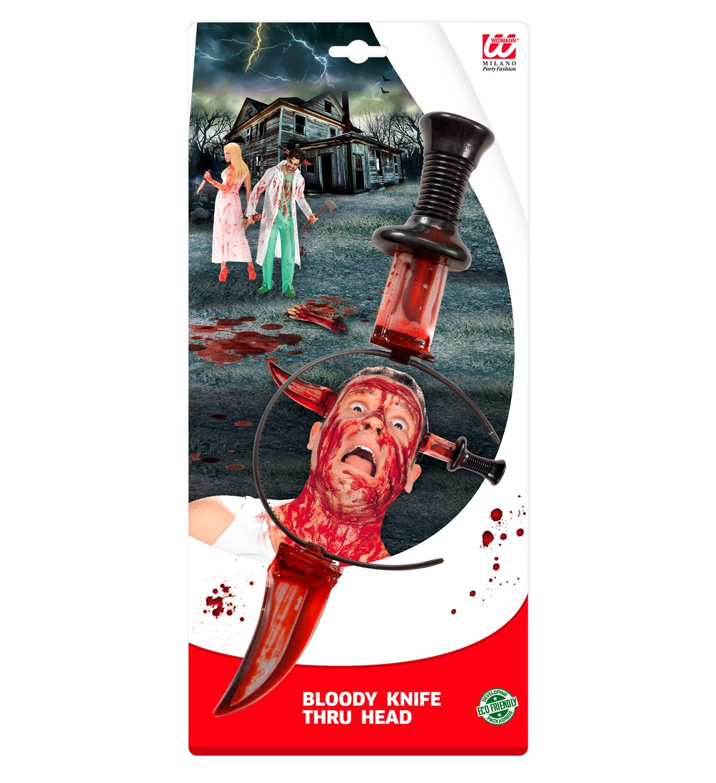 Mes door hoofd voor Halloween Erg leuke bangmakende accessoires mes door hoofd. Met deze set mes door hoofd lijkt het... Lees meer
