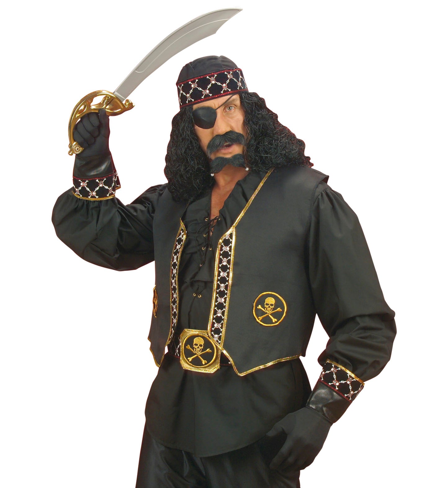 Prachtige handschoenen voor bij jouw piratenkostuum Mooie zwarte piratenhandschoenen met een in goudkleur opgedrukte doodskopjes. Deze piraten handschoen maakt jouw... Lees meer