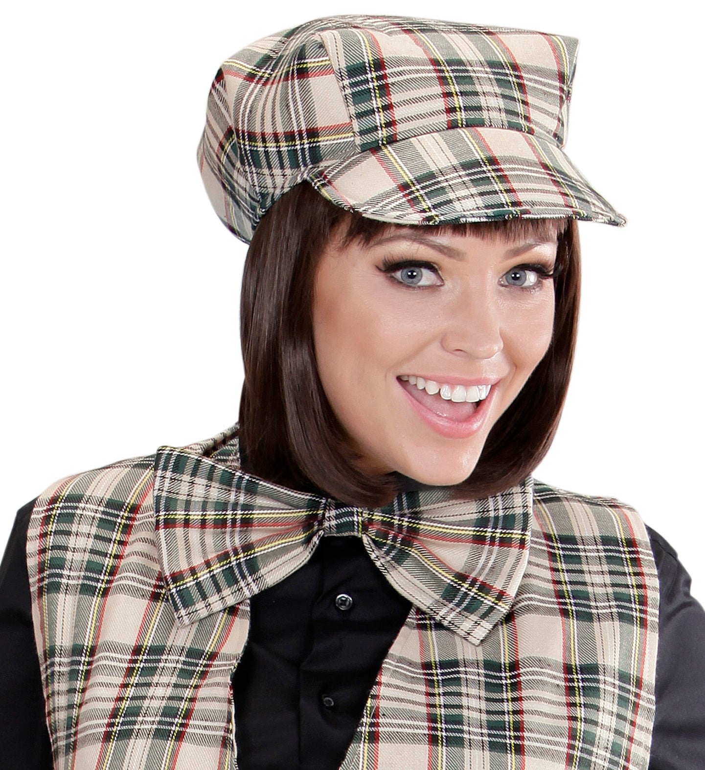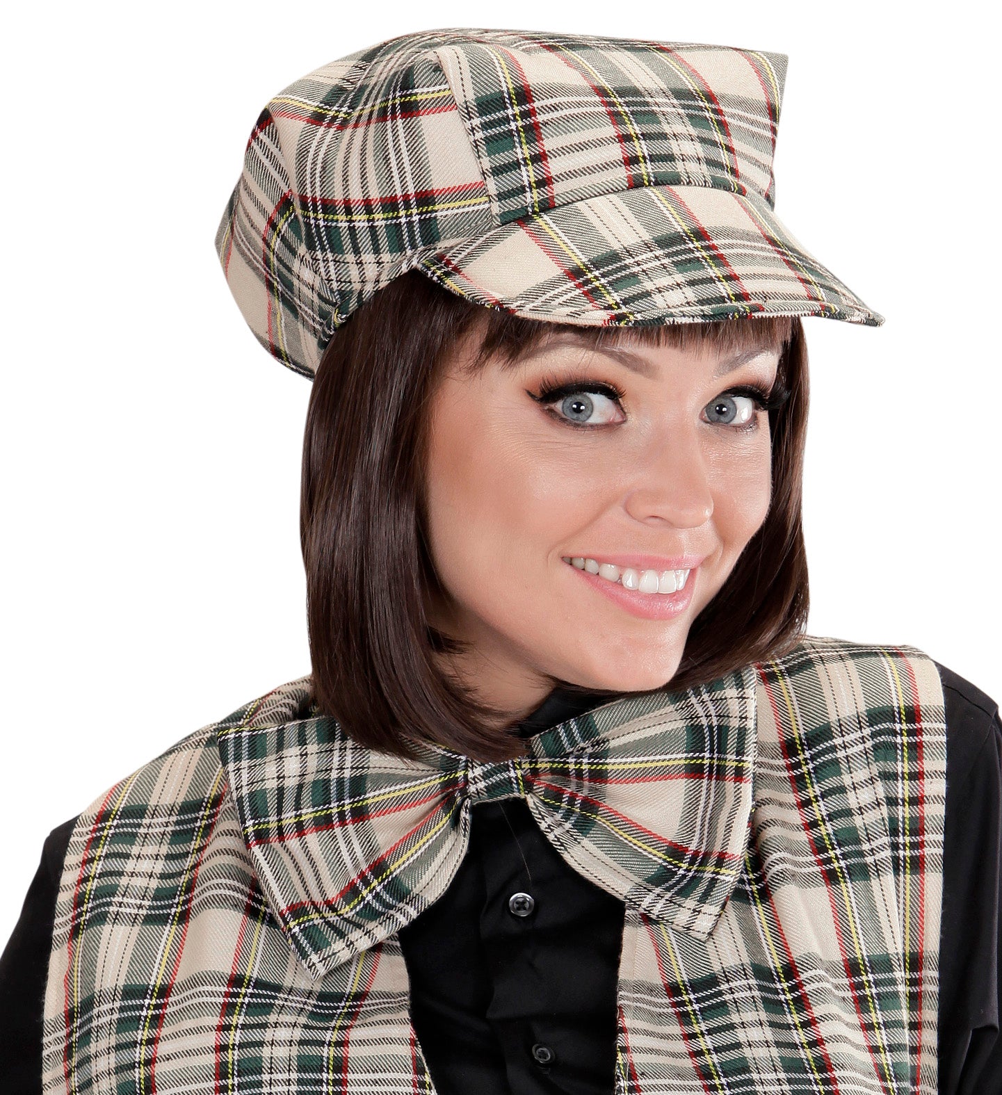 Schotse pet tartan met strik ruit beige