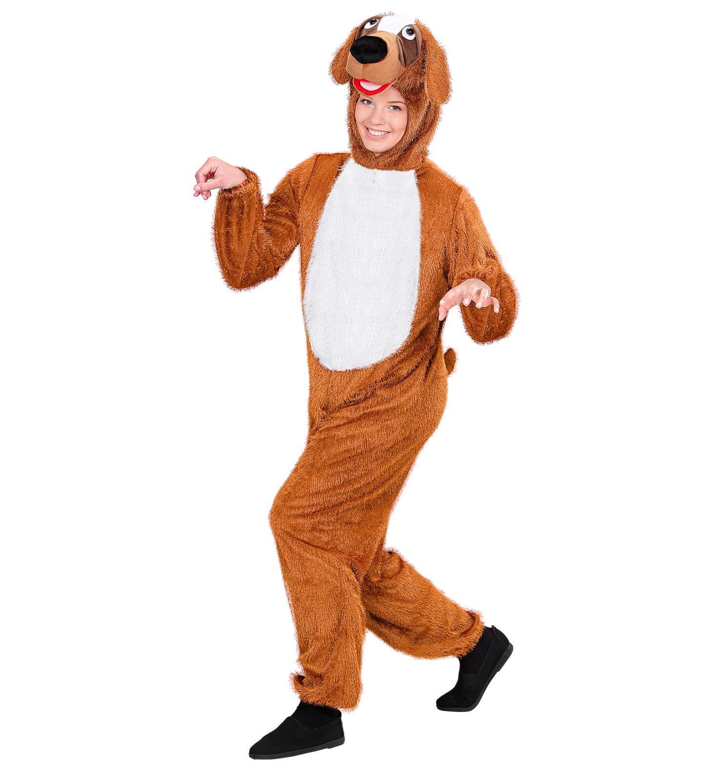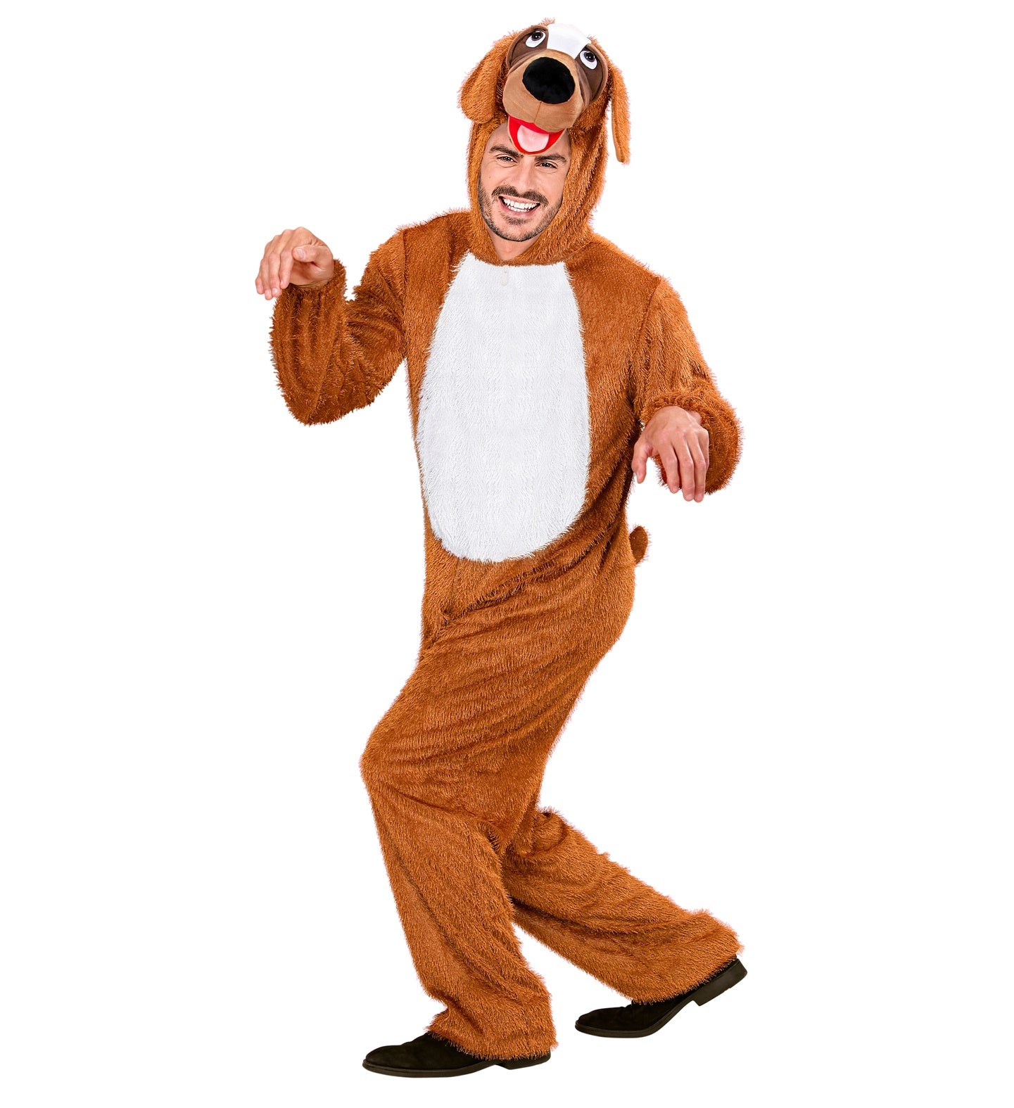 Pluche troetel hondenpak voor carnaval Dit bruine troetel honden kostuum voor dames en heren is een lekker warm feestkostuum uit... Lees meer