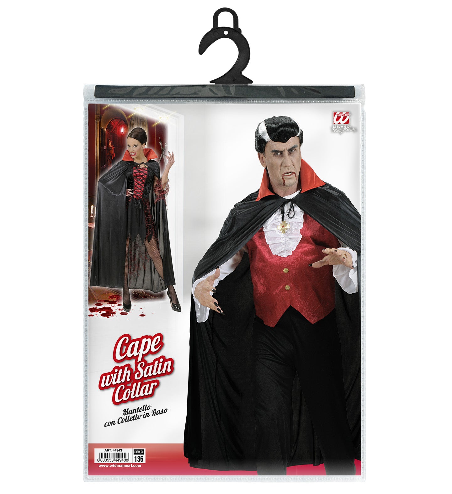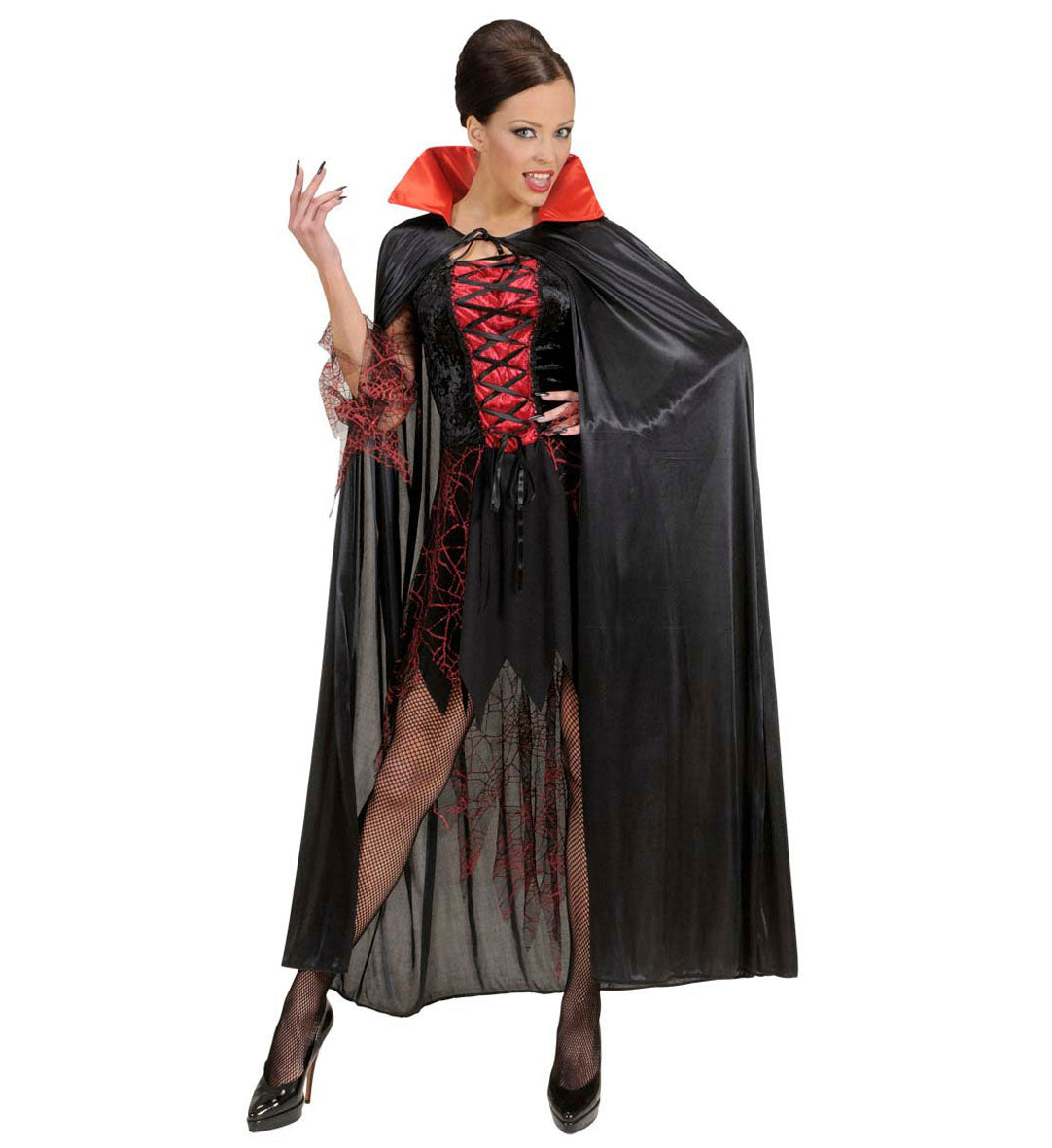Vampier cape zwart met rode kraag volwassenen