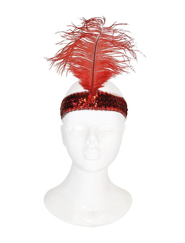 Charleston hoofdband met veer rood