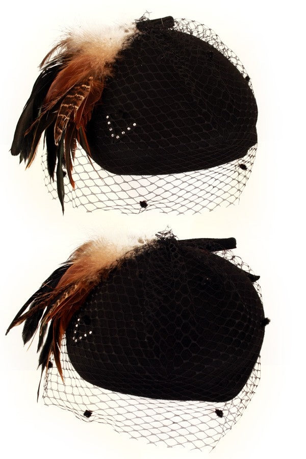 Dameshoed wolvilt zwart bruin veren