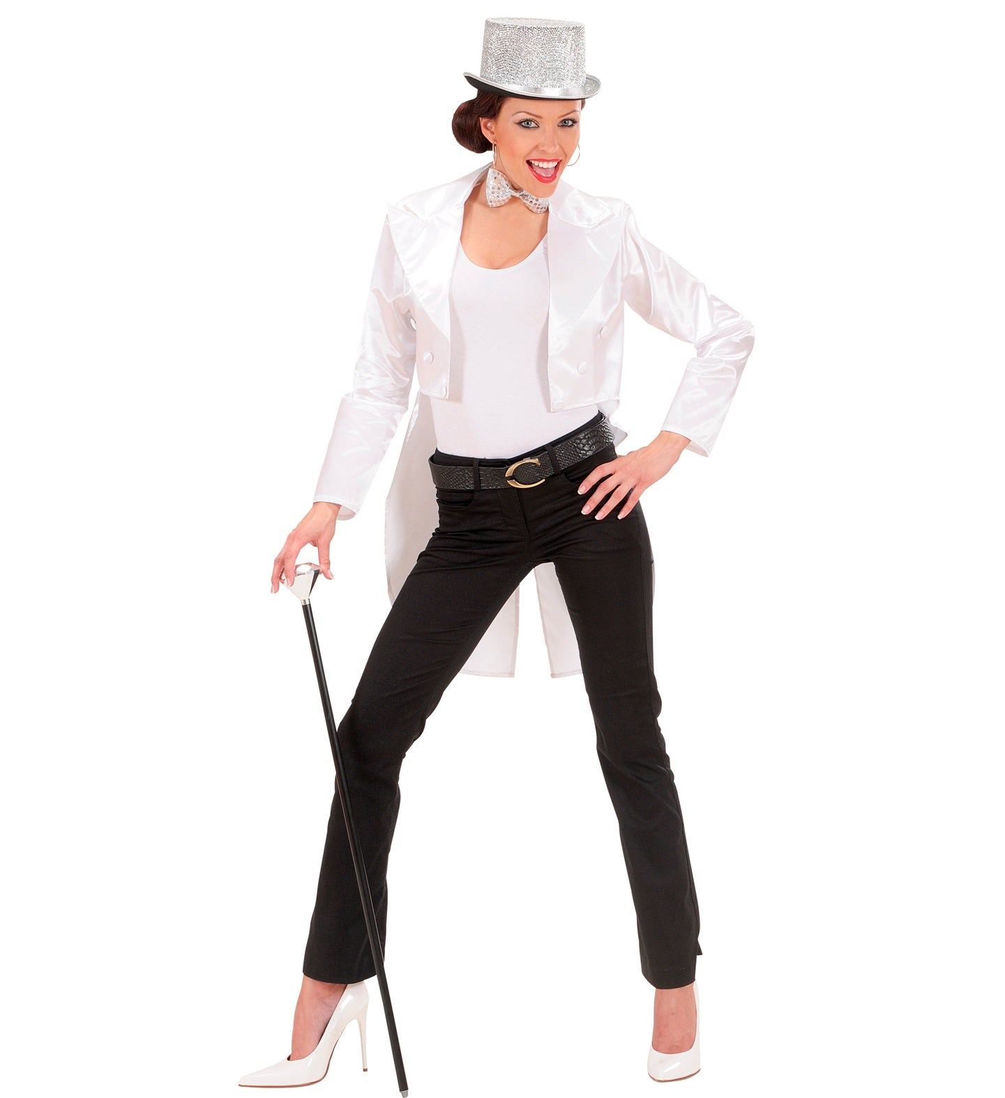 Steel de show met deze elegante witte satijnen slipjas voor dames! Perfect voor elke feestelijke gelegenheid en gegarandeerd een blikvanger.... Lees meer