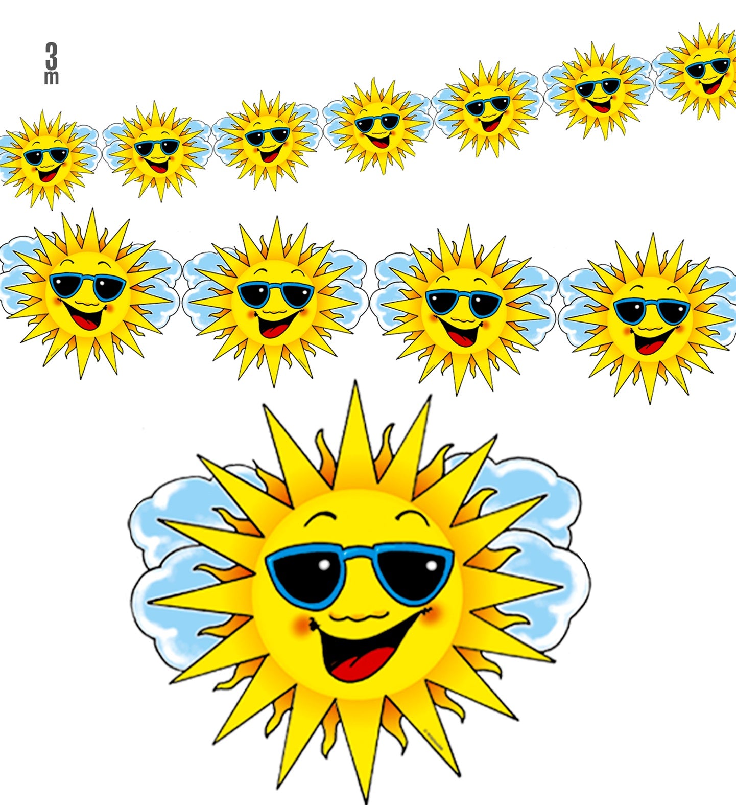 Feestslinger van papier met zonnetjes Deze fleurige feestslinger met grappige zonnetjes is leuk voor verjaardagen, tuinfeesten en andere party's waar... Lees meer