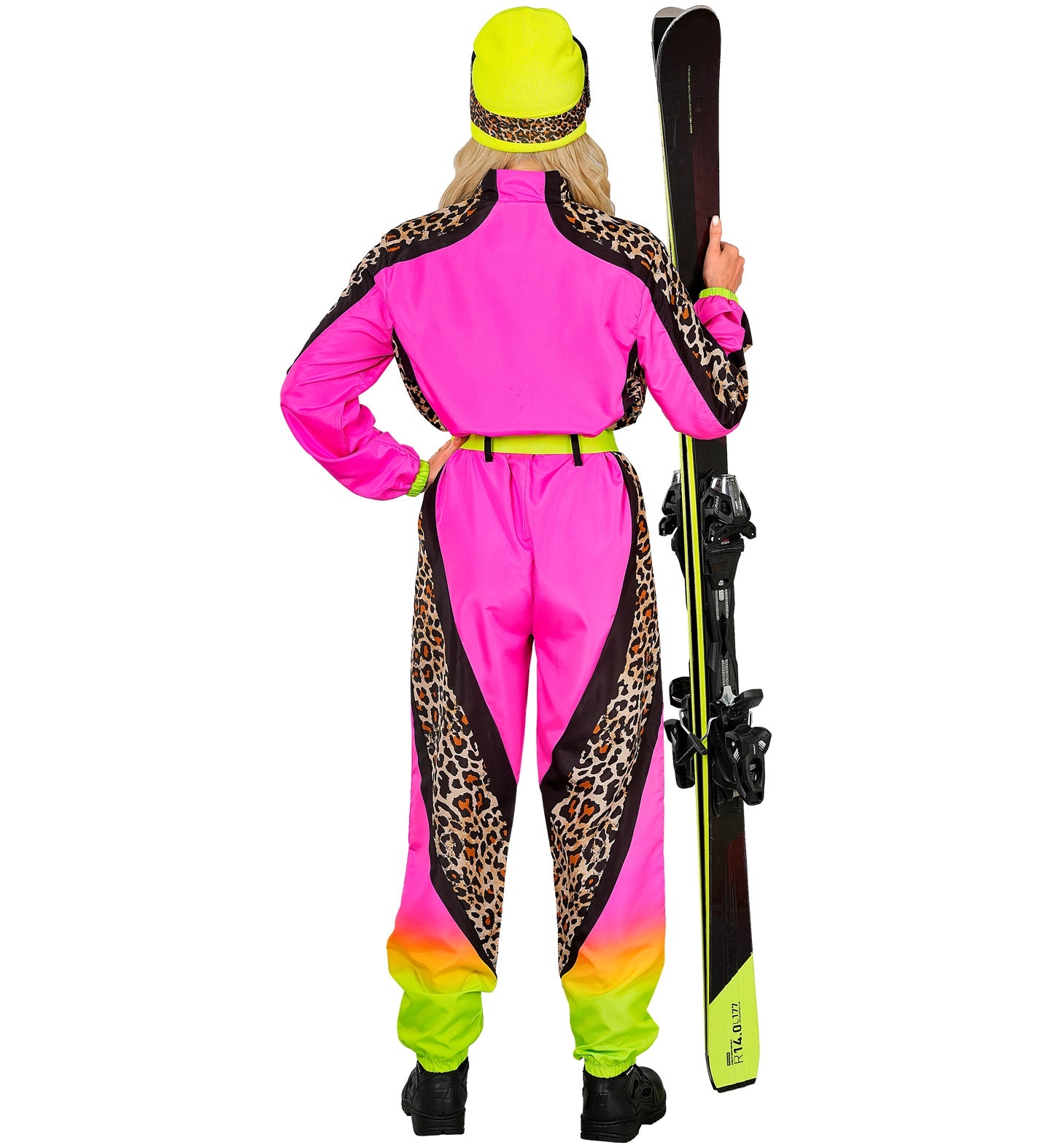 Klaar om alle aandacht te trekken? Dit spectaculaire luipaard skipak in roze en geel van Widmann combineert de iconische jaren 80 stijl met een wilde, opvallende print. Perfect voor après-ski feesten, carnaval, foute party's en iedereen die durft op te vallen! Met dit skipak ben je verzekerd van een onvergetelijke entree die niemand vergeet.
