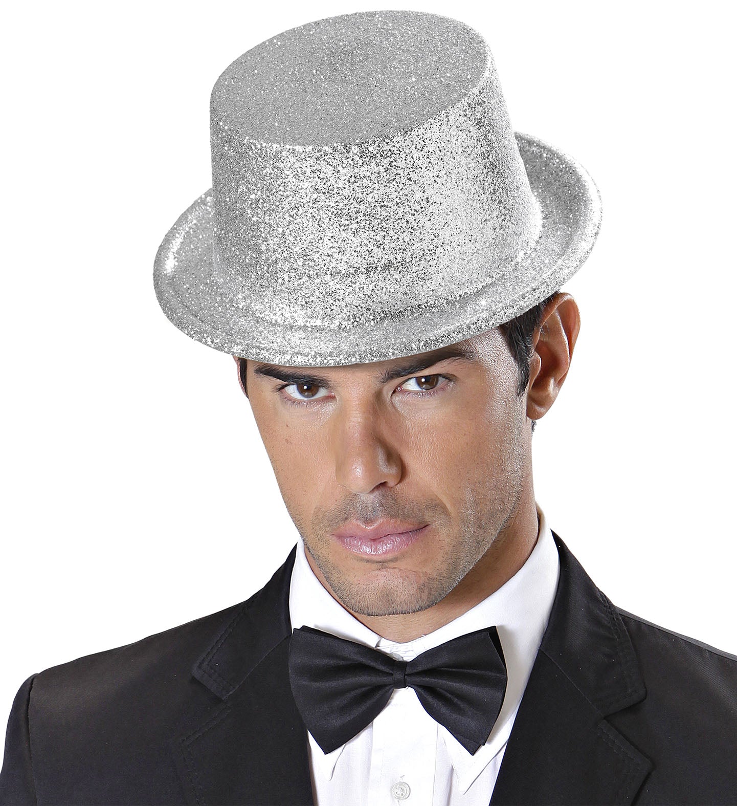 Glitter hoge hoed zilver