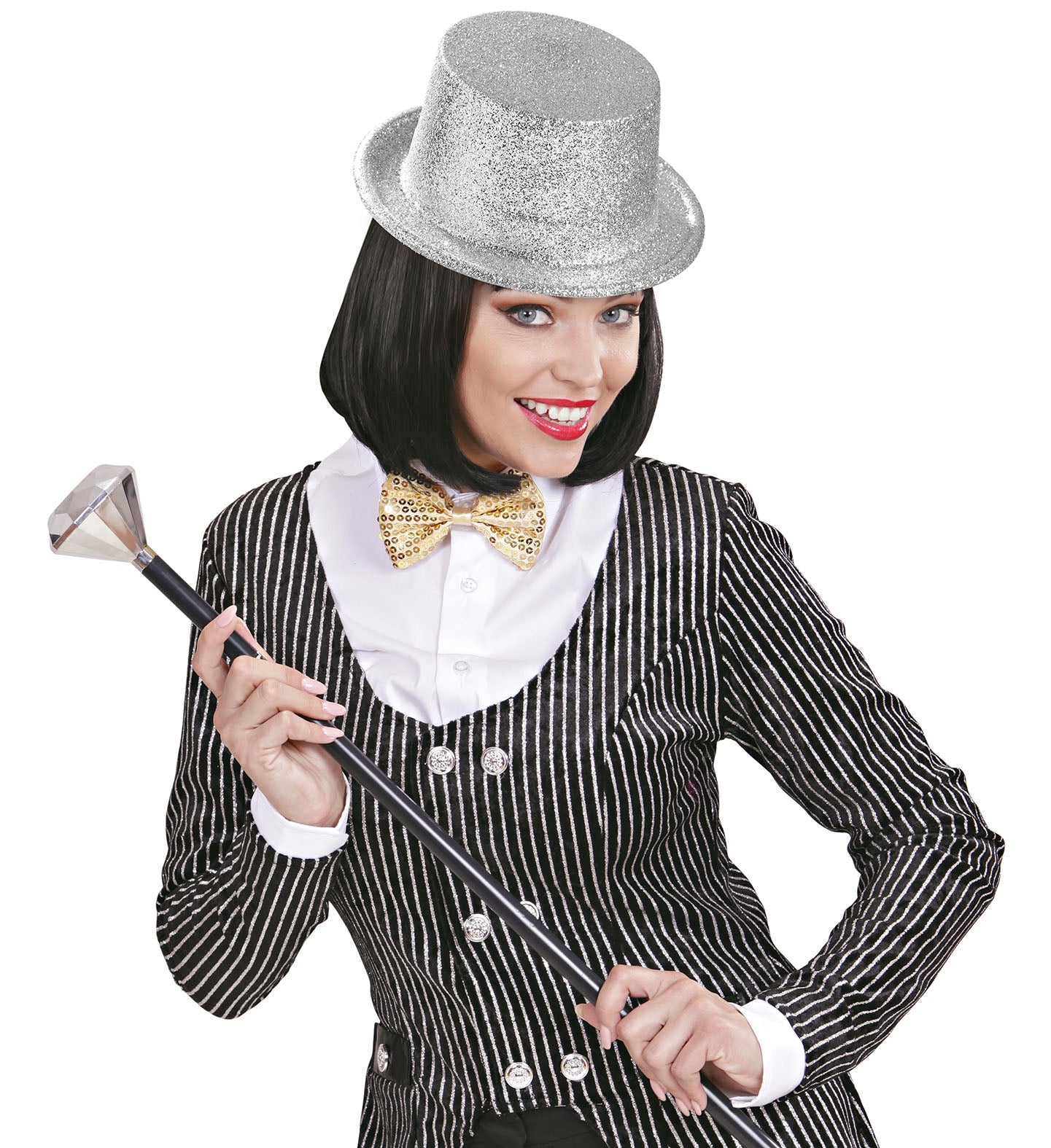 Steel de show met deze zilveren glitter hoge hoed! Perfect voor elk feest of carnaval. Kenmerken Sprankelende zilveren glitters Stijlvolle... Lees meer