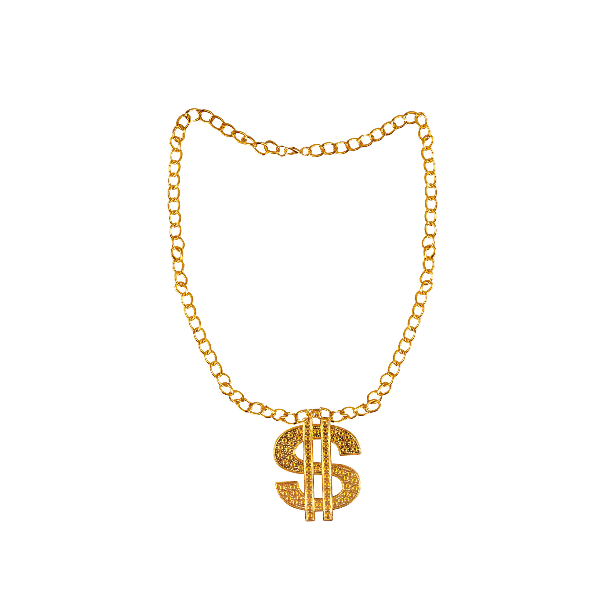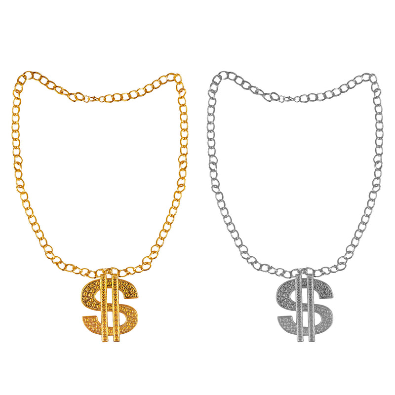 Voel je als een echte high roller met deze gouden of zilveren dollarteken halsketting! Perfect voor een fout feestje en... Lees meer