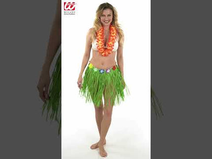 Hawaiirokje groen met bloemenriem 40cm Maud