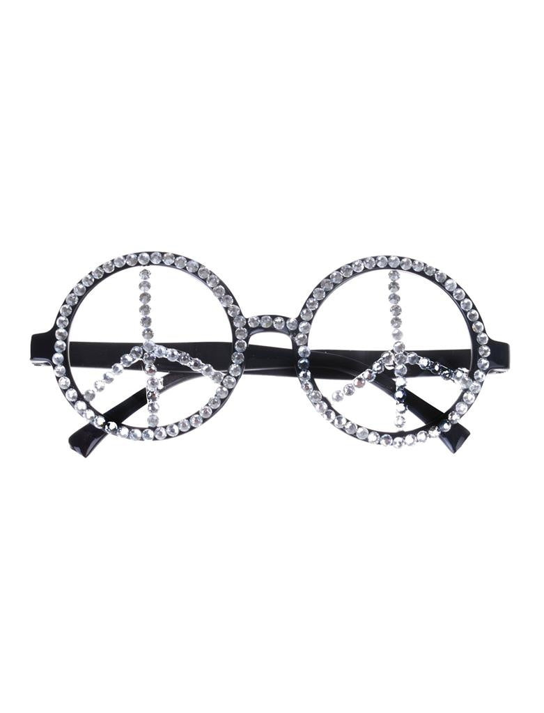 Hippie bril peace met glitter steentjes