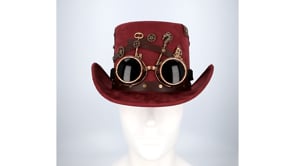 Ben je klaar om je carnavalsoutfit naar een hoger niveau te tillen? Met de Steampunkhoed bordeaux luxe maak je gegarandeerd indruk op elk feest! Deze hoed is de perfecte mix van elegantie en excentriciteit, en voegt een vleugje mysterie toe aan je look. Of je nu een doorgewinterde carnavalsvierder bent of voor het eerst de polonaise loopt, deze hoed is jouw geheime wapen voor een onvergetelijke avond.