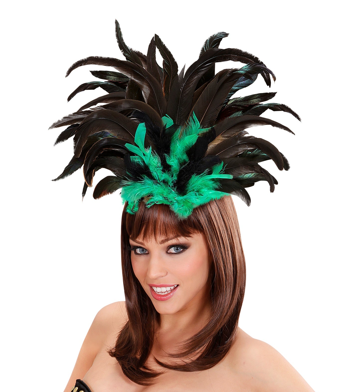 Voel de ritmes van Rio met de Hoofdband Copa Cabana! Deze zwart-groene veren maken je outfit onweerstaanbaar. Perfect voor carnaval... Lees meer