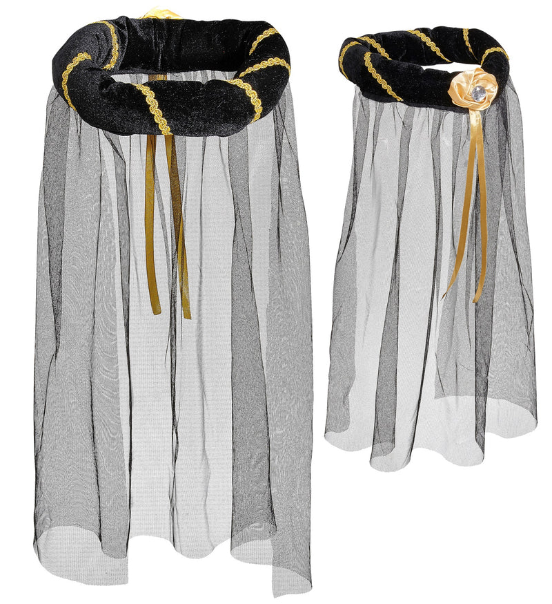 Hoofdbedekking met sluier middeleeuwse koningin zwart
