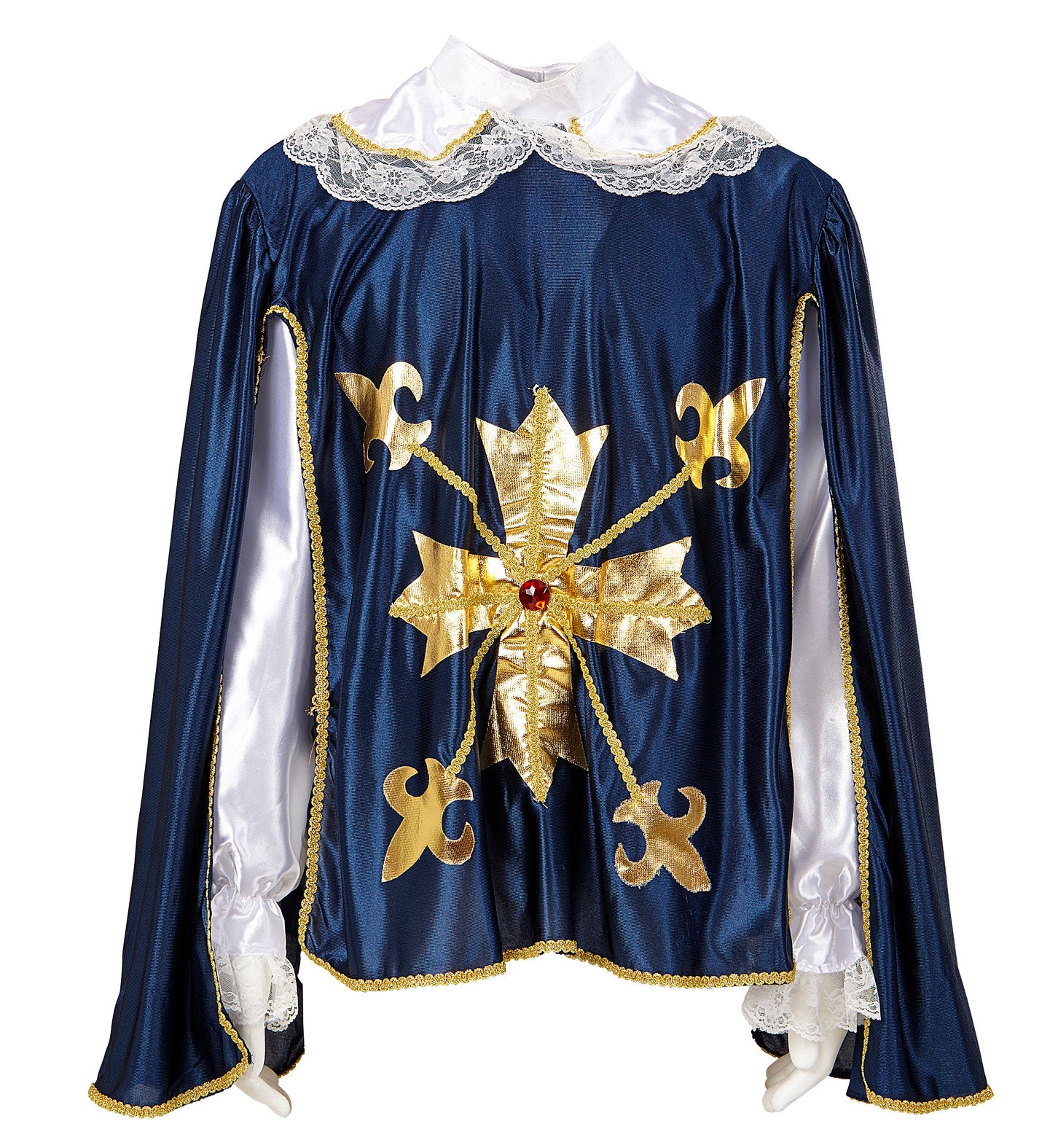 Transformeer jezelf in een dappere musketier met deze stijlvolle cape, blouse en kraag! Perfect voor carnaval of themafeesten. Wees de held van de avond!