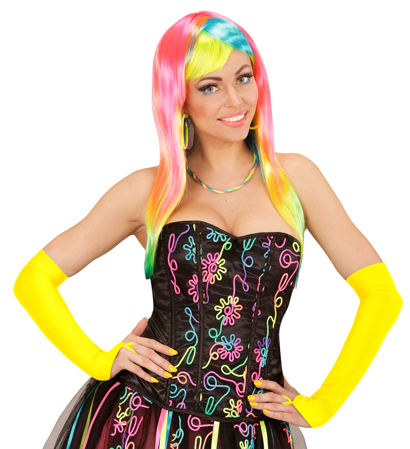 Steel de show met onze neon gele satijnen handschoenen zonder vingers! Perfect voor elk feest, van carnaval tot disco. Voel... Lees meer