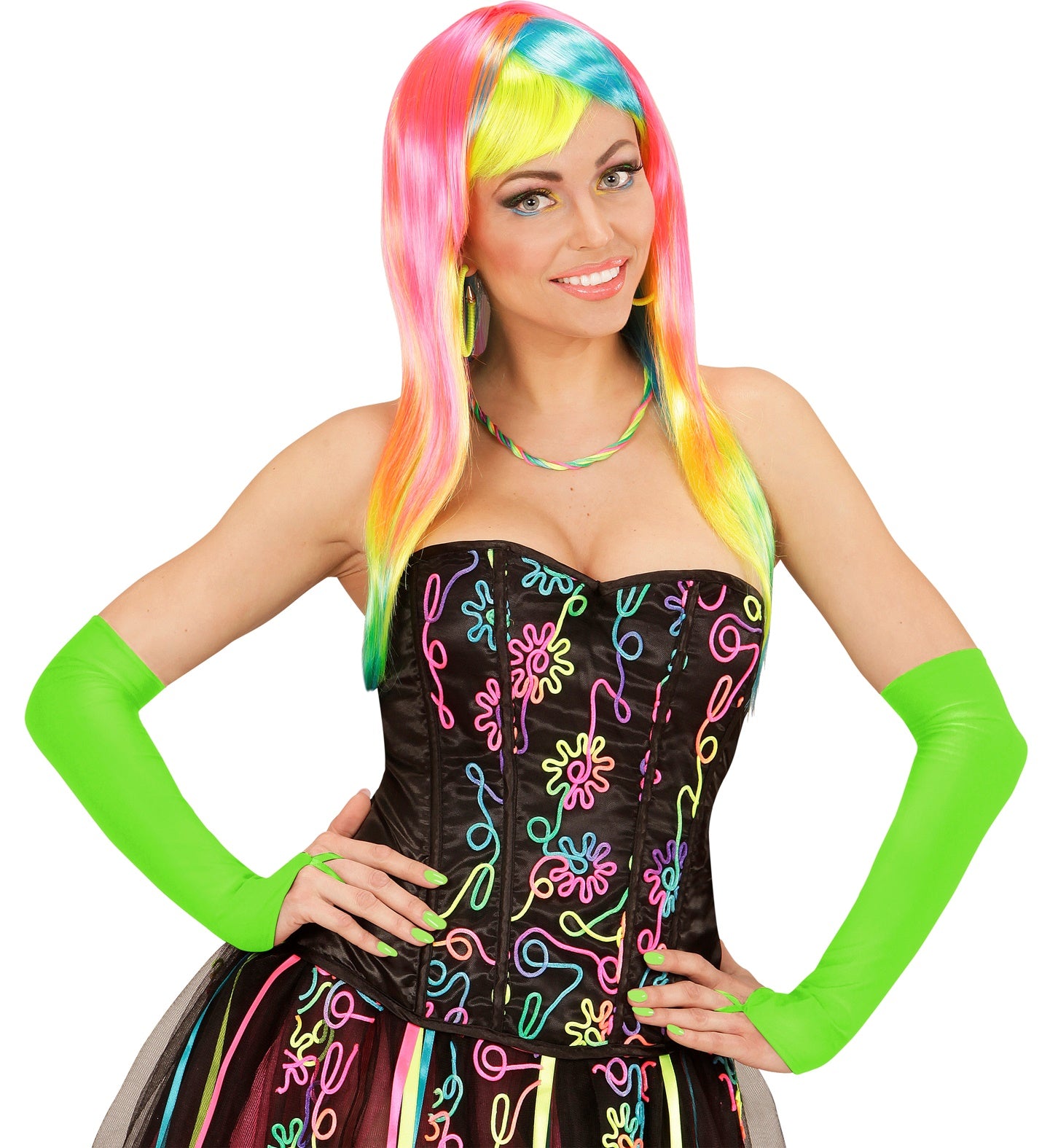 Steel de show met deze neon groene satijnen handschoenen! Perfect voor elk feest, van carnaval tot themafeest. Voel je als... Lees meer