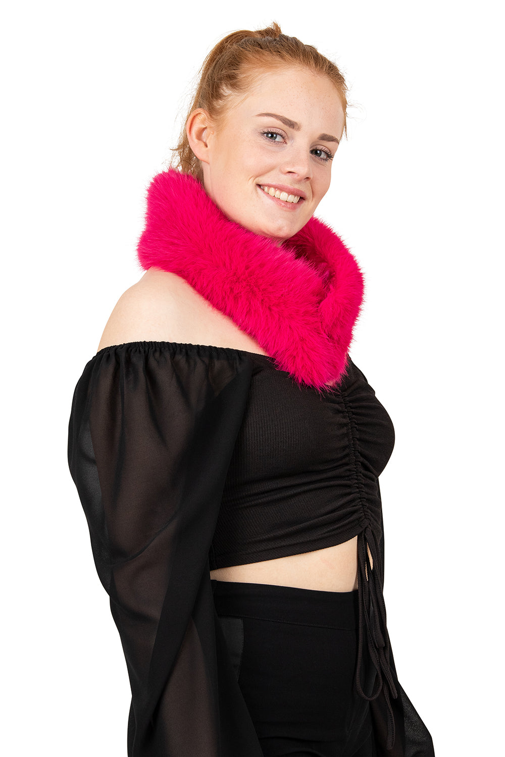 Nep bont sjaal diep rood met clip