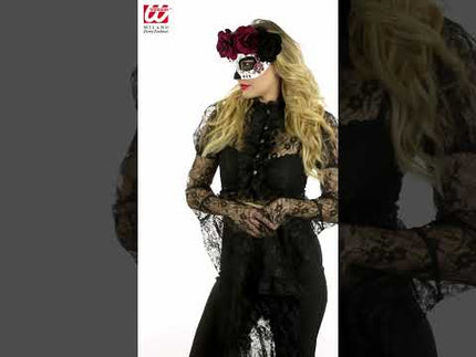 Oogmasker dag van de doden met zwarte en rode rozen Lynn