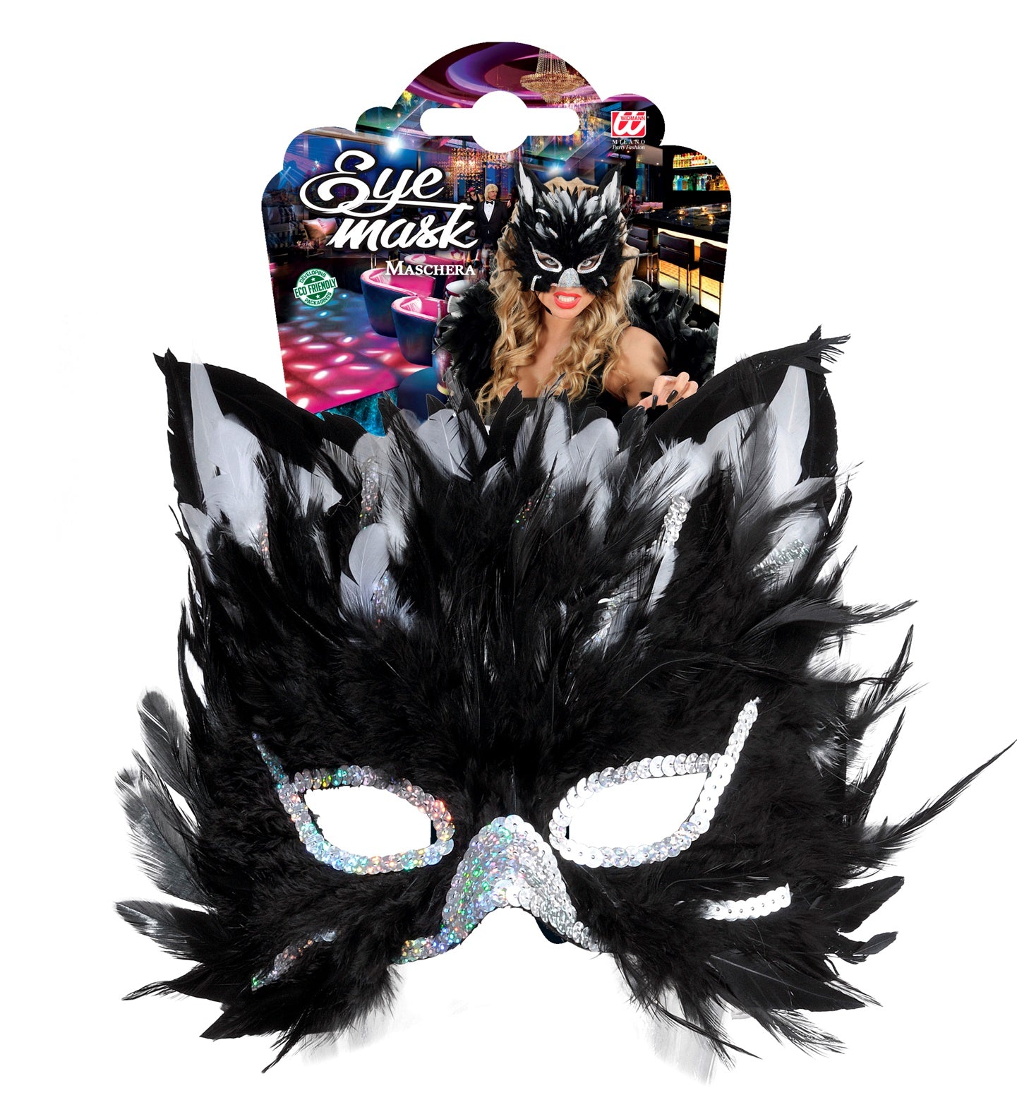 Oogmasker kat met veertjes