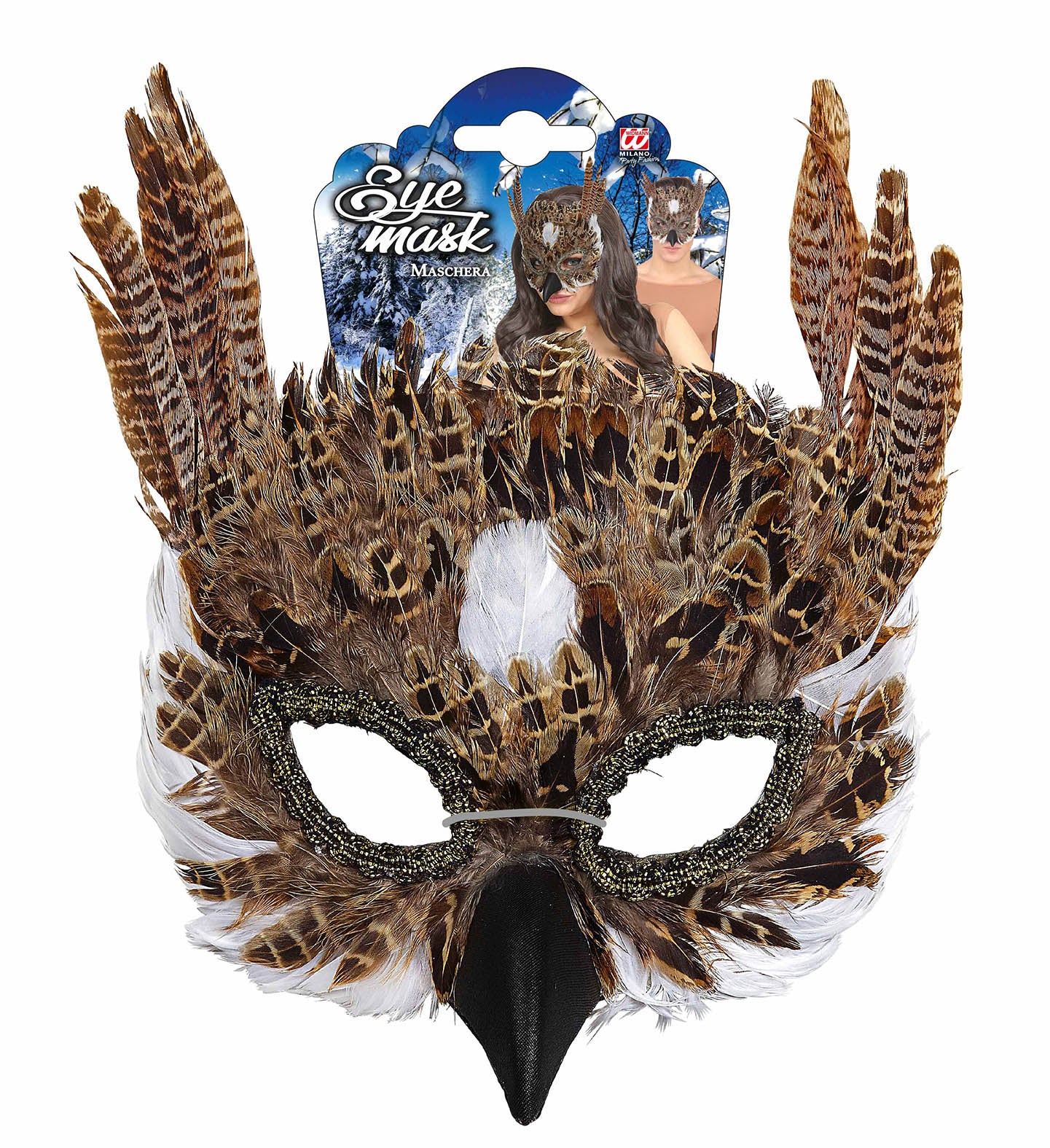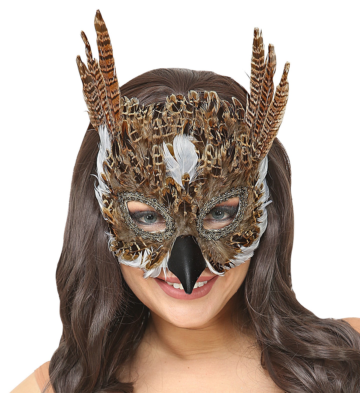 Oogmasker uil met veren