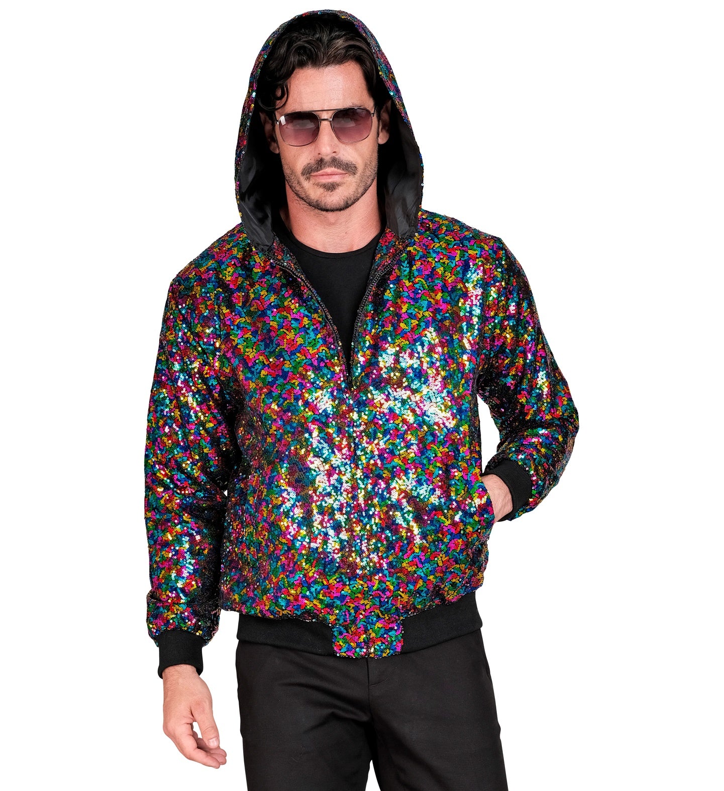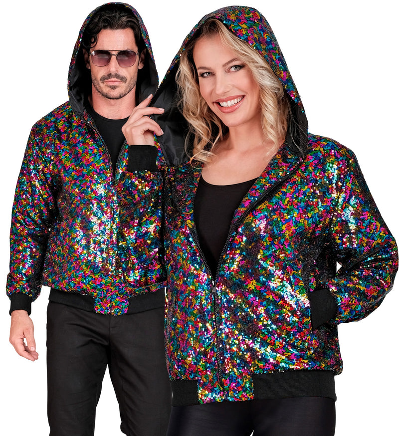Steel de show met deze pailletten bomberjas met kap in multikleur! Perfect voor elk feest, je zult stralen als nooit... Lees meer