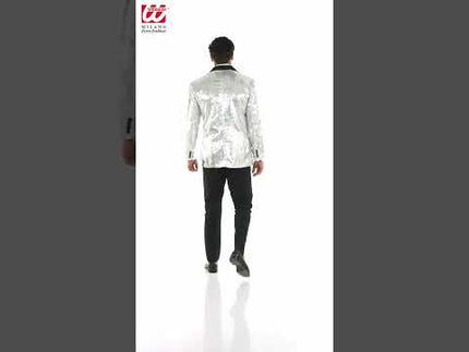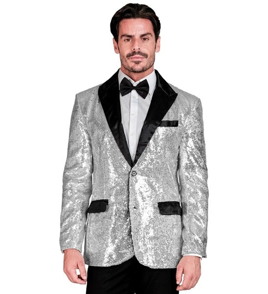 Paillettencolbert zilver met satijnen revers/zakken