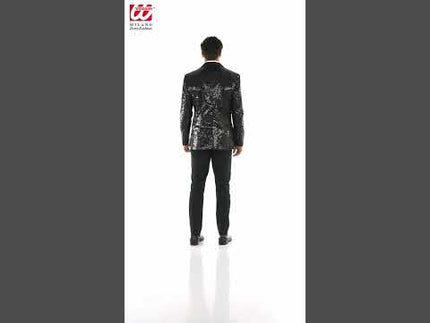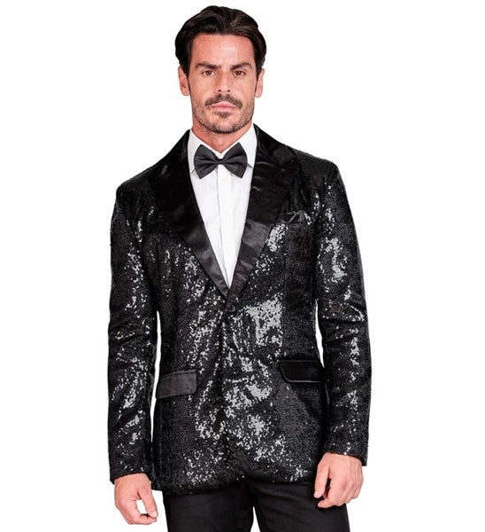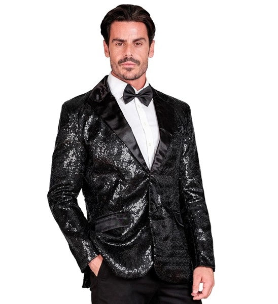 Paillettencolbert zwart met satijnen revers/zakken