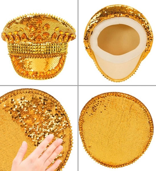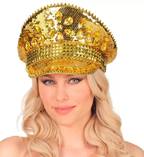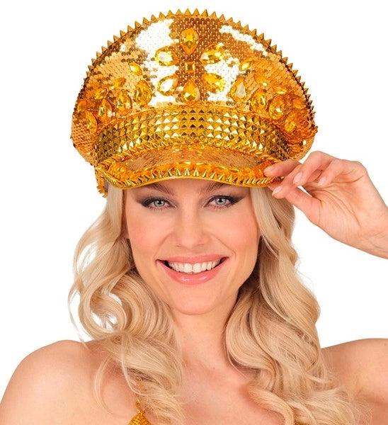 Pet met juwelen en pailletten goud hoed Roos
