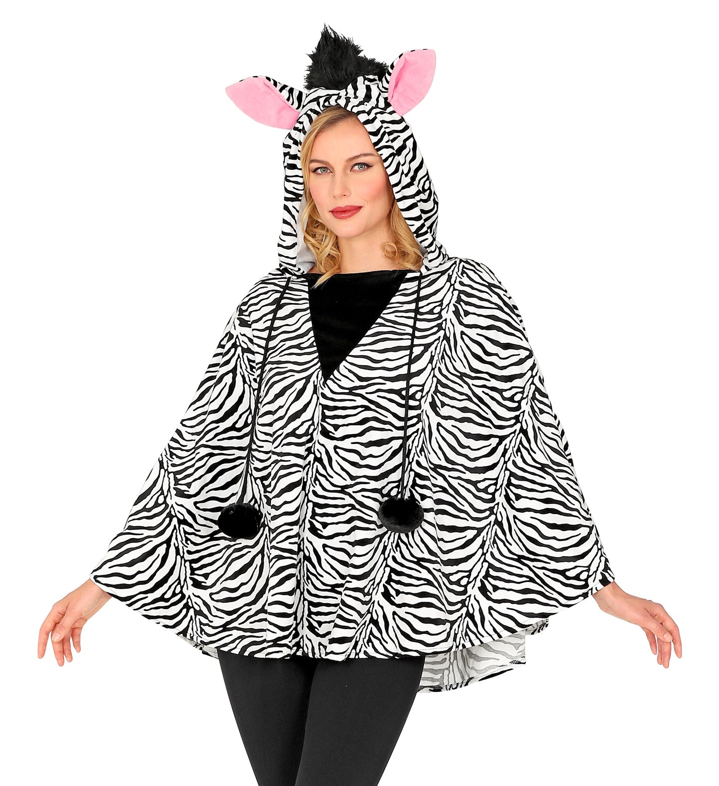 Zebra poncho volwassenen met muts