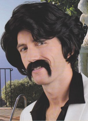 Pruik huck Norris met snor zwart