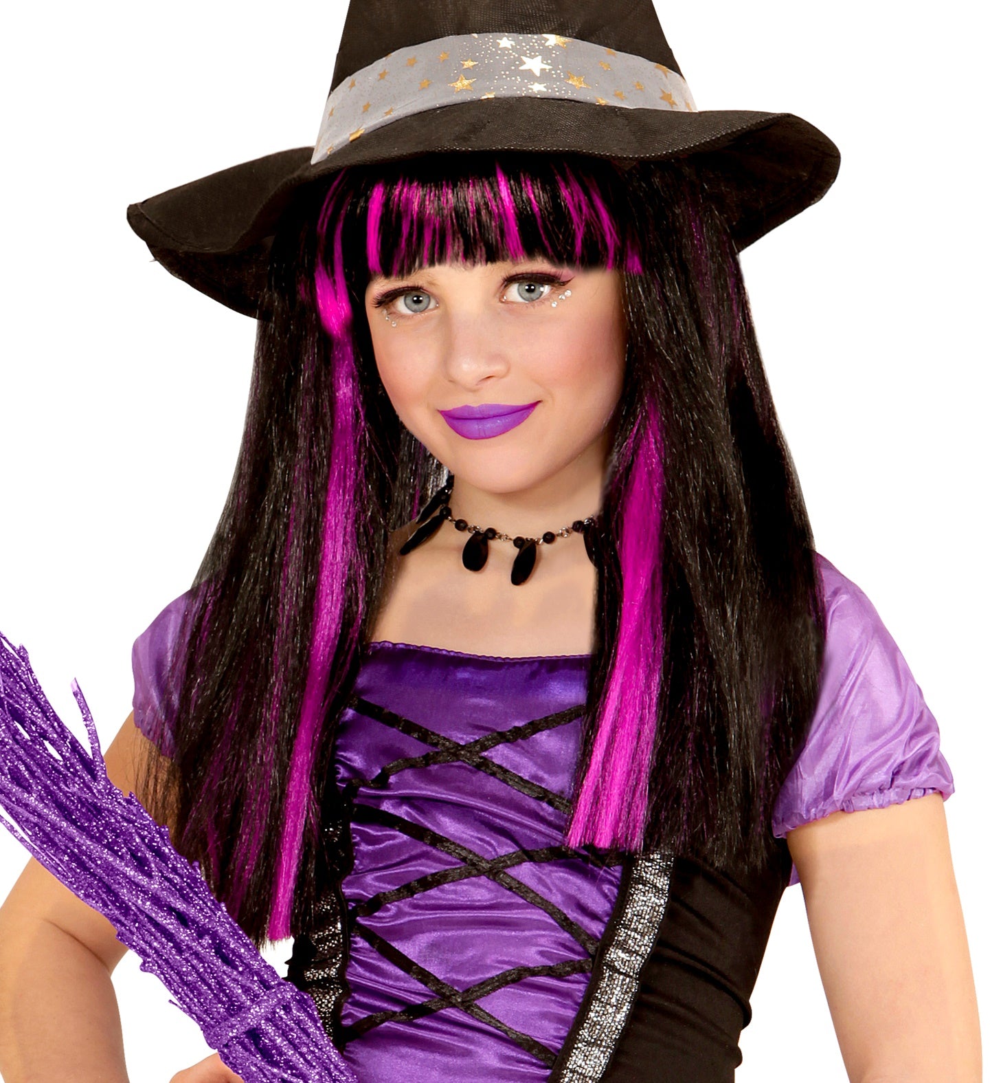 Laat je innerlijke heks stralen met deze betoverende pruik! Perfect voor kleine tovenaressen die willen opvallen. Kenmerken Stijlvolle paarse strepen... Lees meer
