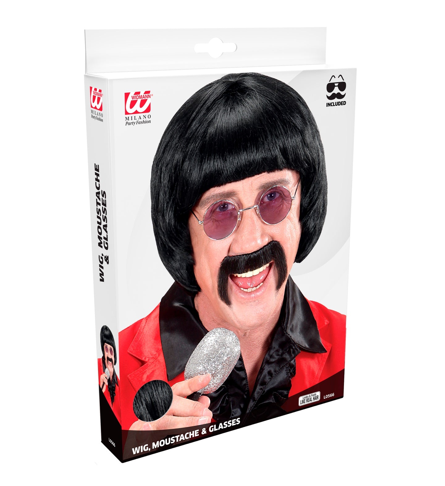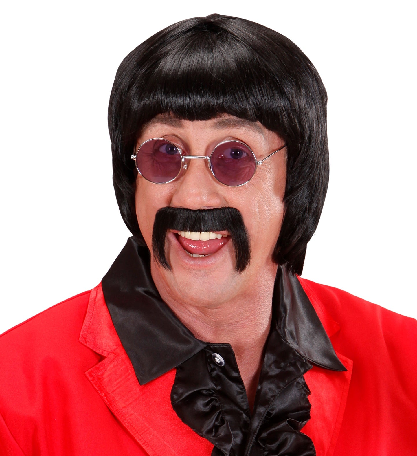 pruik popster 60s zwart met snor en bril