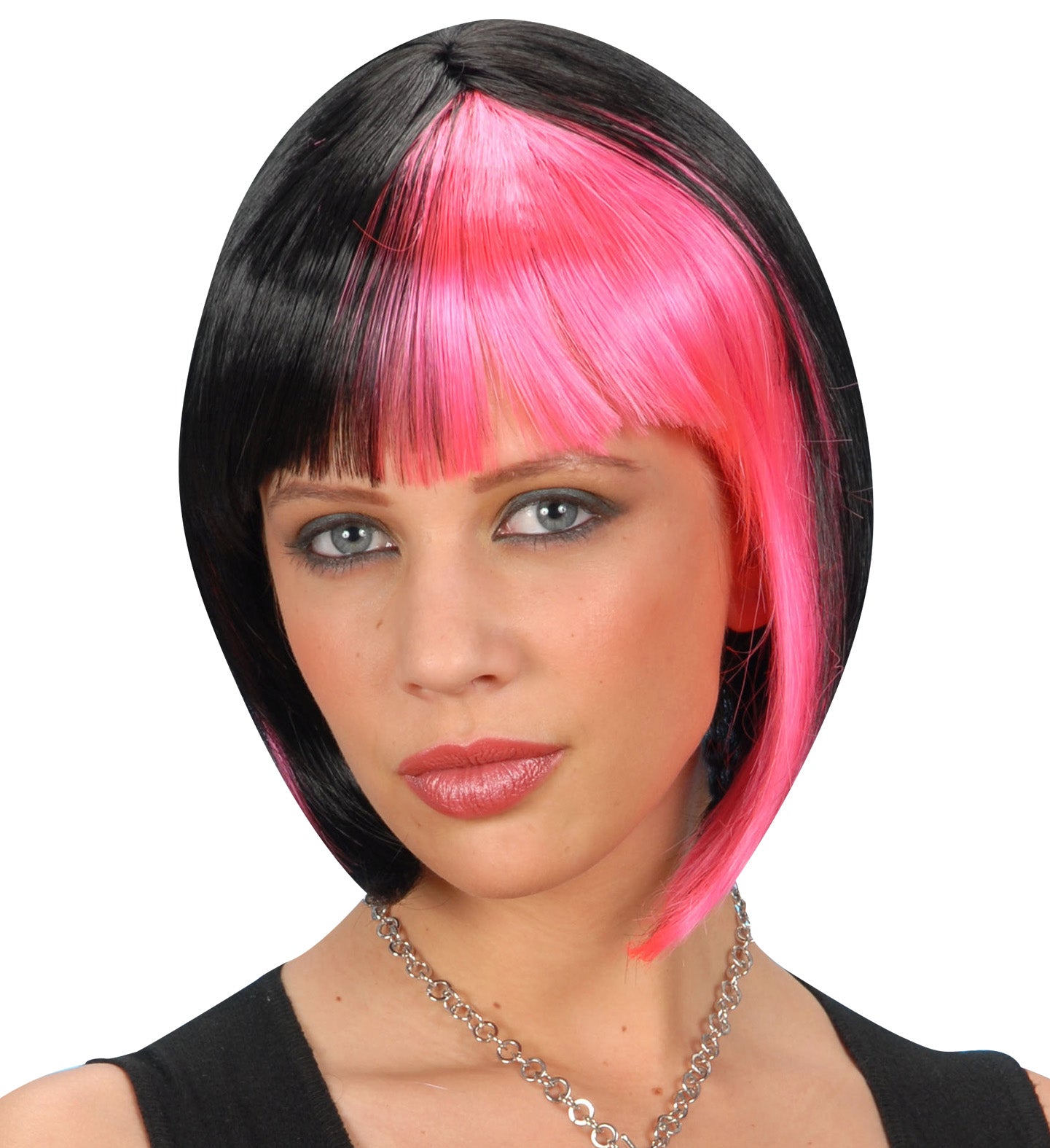 Wacht niet te lang en voeg de Bob pruik zwart met roze highlights vandaag nog toe aan je winkelmandje! Deze populaire pruik is snel uitverkocht. Zorg ervoor dat je er snel bij bent om jouw perfecte feestlook compleet te maken!