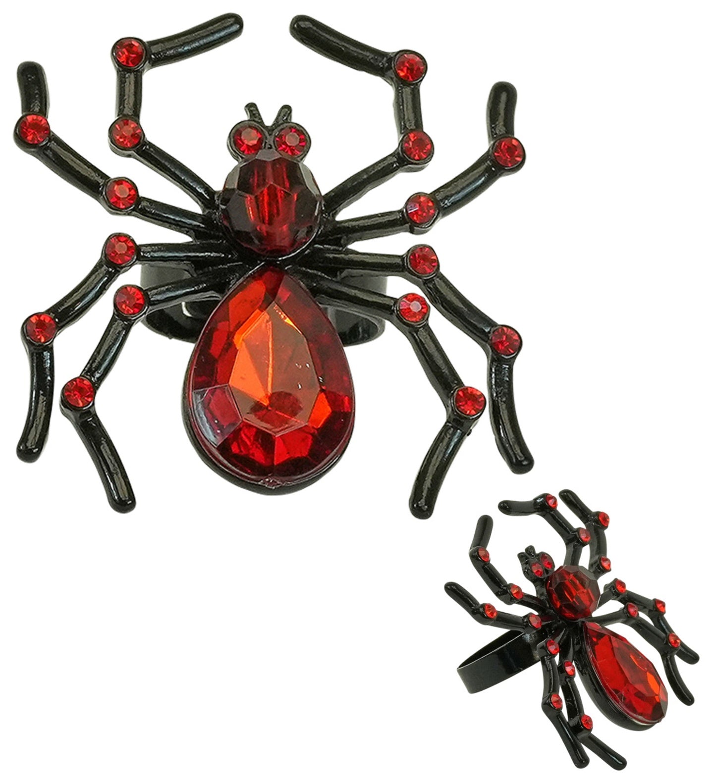 Ring spin met rode edelstenen en strass