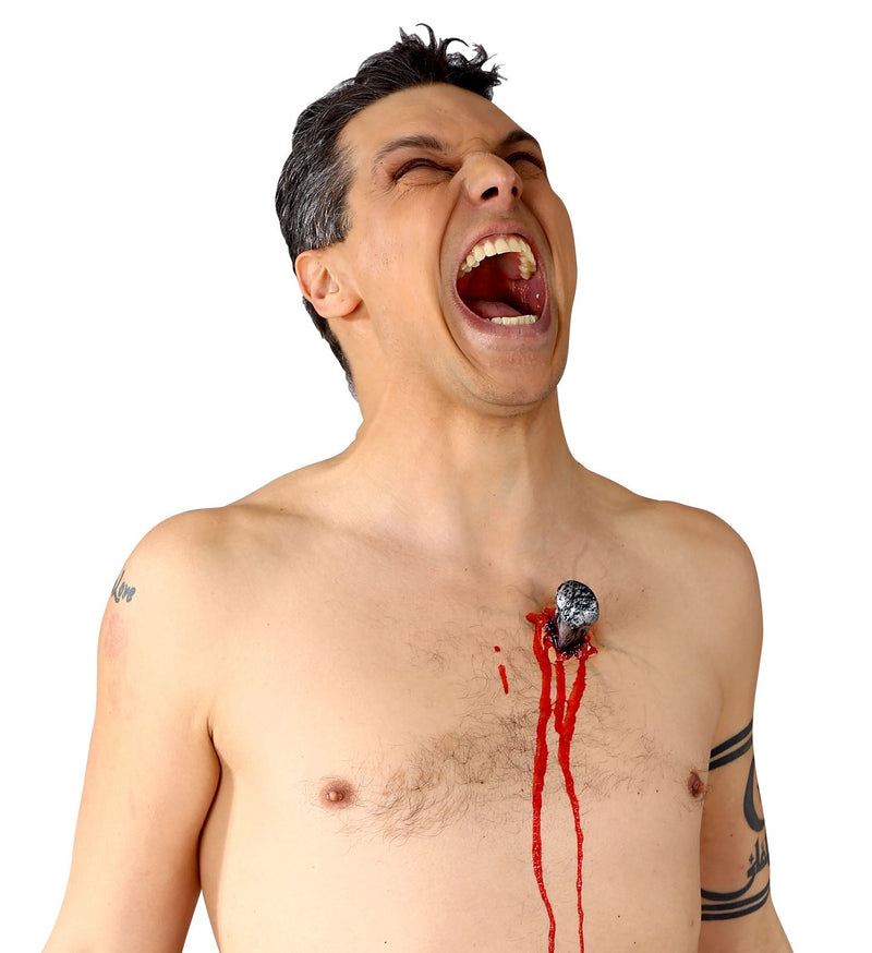 Spijker in je hart special effect. Met deze nep spijkerdoor je huid lijkt het net alsof je met klussen jezelf... Lees meer